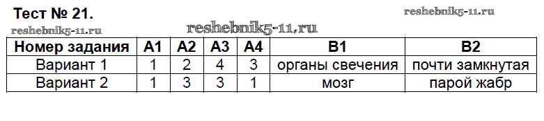 Готовая домашняя работа с ответами по Биологии за 7 класс Артемьева Контрольно-измерительные материалы (КИМ) ВАКО 2018 ФГОС - Тесты 21
