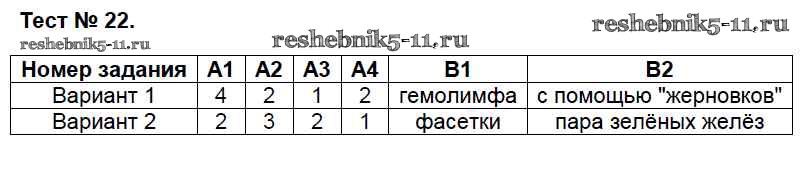 Готовая домашняя работа с ответами по Биологии за 7 класс Артемьева Контрольно-измерительные материалы (КИМ) ВАКО 2018 ФГОС - Тесты 22