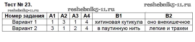 Готовая домашняя работа с ответами по Биологии за 7 класс Артемьева Контрольно-измерительные материалы (КИМ) ВАКО 2018 ФГОС - Тесты 23