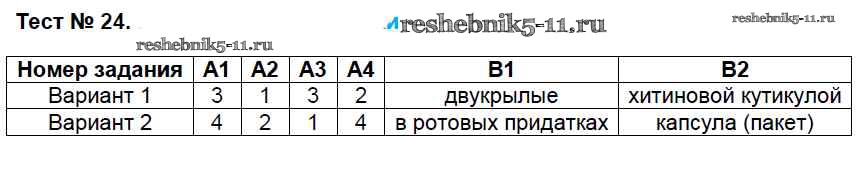 Готовая домашняя работа с ответами по Биологии за 7 класс Артемьева Контрольно-измерительные материалы (КИМ) ВАКО 2018 ФГОС - Тесты 24