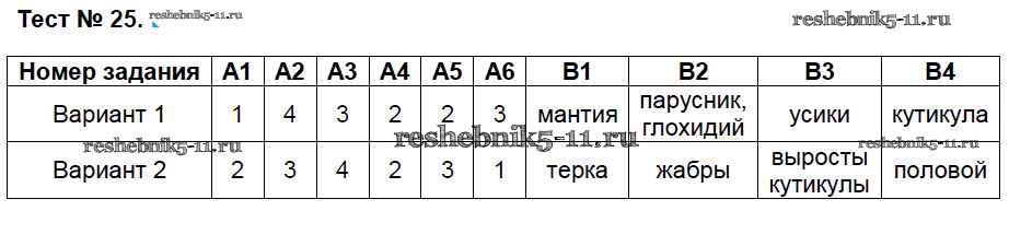 Готовая домашняя работа с ответами по Биологии за 7 класс Артемьева Контрольно-измерительные материалы (КИМ) ВАКО 2018 ФГОС - Тесты 25