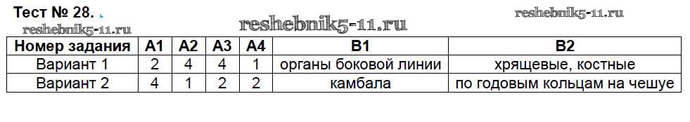Готовая домашняя работа с ответами по Биологии за 7 класс Артемьева Контрольно-измерительные материалы (КИМ) ВАКО 2018 ФГОС - Тесты 28
