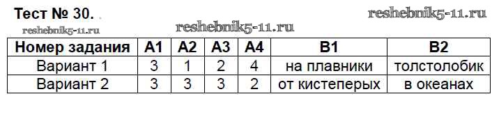 Готовая домашняя работа с ответами по Биологии за 7 класс Артемьева Контрольно-измерительные материалы (КИМ) ВАКО 2018 ФГОС - Тесты 30