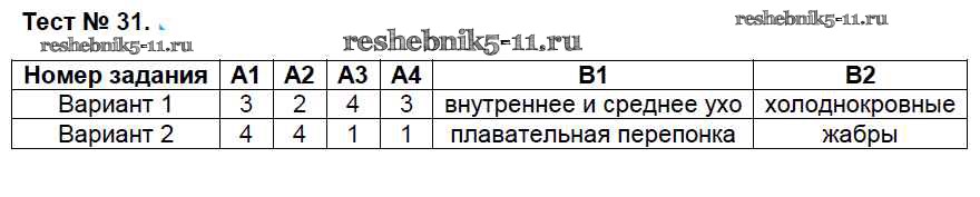Готовая домашняя работа с ответами по Биологии за 7 класс Артемьева Контрольно-измерительные материалы (КИМ) ВАКО 2018 ФГОС - Тесты 31