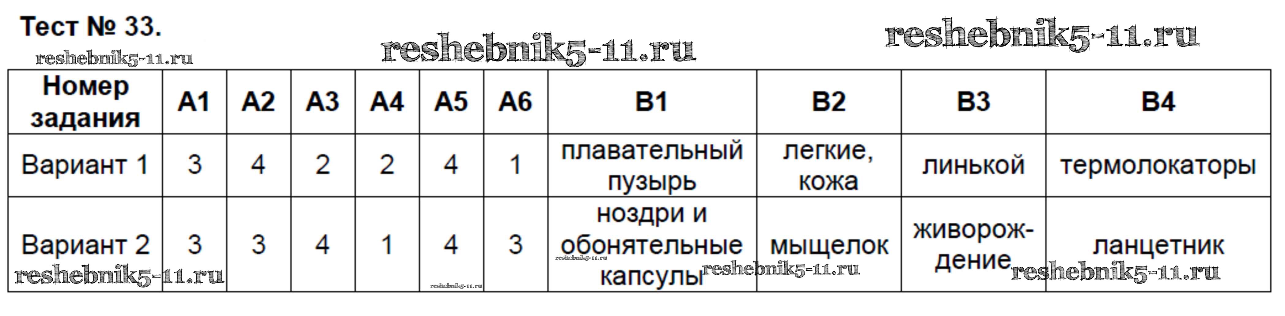 Готовая домашняя работа с ответами по Биологии за 7 класс Артемьева Контрольно-измерительные материалы (КИМ) ВАКО 2018 ФГОС - Тесты 33