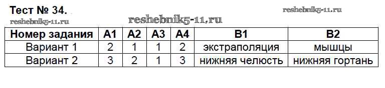 Готовая домашняя работа с ответами по Биологии за 7 класс Артемьева Контрольно-измерительные материалы (КИМ) ВАКО 2018 ФГОС - Тесты 34
