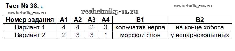 Готовая домашняя работа с ответами по Биологии за 7 класс Артемьева Контрольно-измерительные материалы (КИМ) ВАКО 2018 ФГОС - Тесты 38