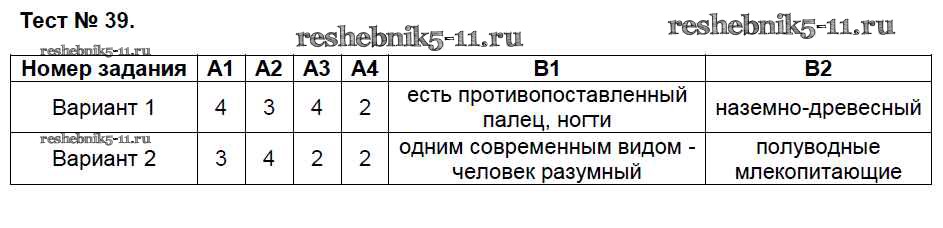 Готовая домашняя работа с ответами по Биологии за 7 класс Артемьева Контрольно-измерительные материалы (КИМ) ВАКО 2018 ФГОС - Тесты 39