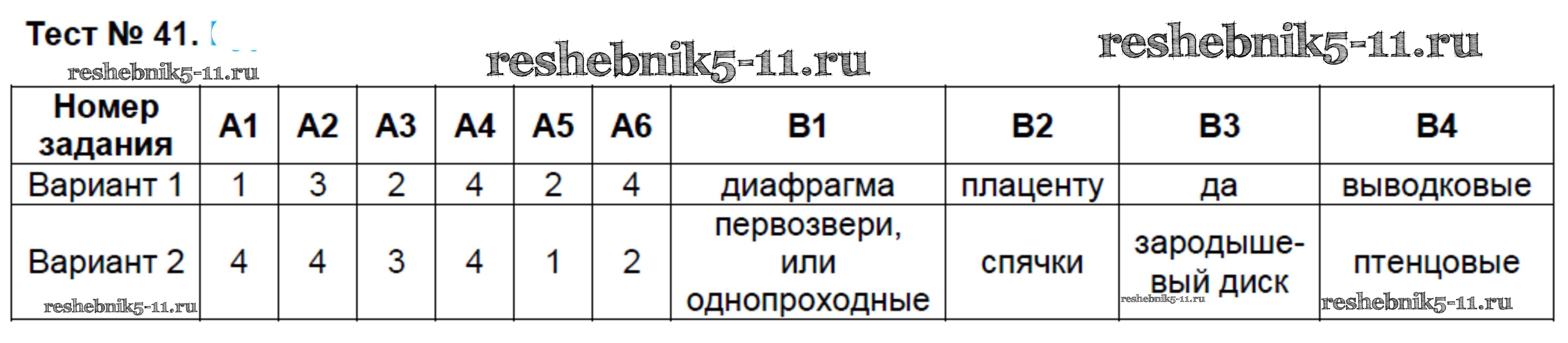 Готовая домашняя работа с ответами по Биологии за 7 класс Артемьева Контрольно-измерительные материалы (КИМ) ВАКО 2018 ФГОС - Тесты 41