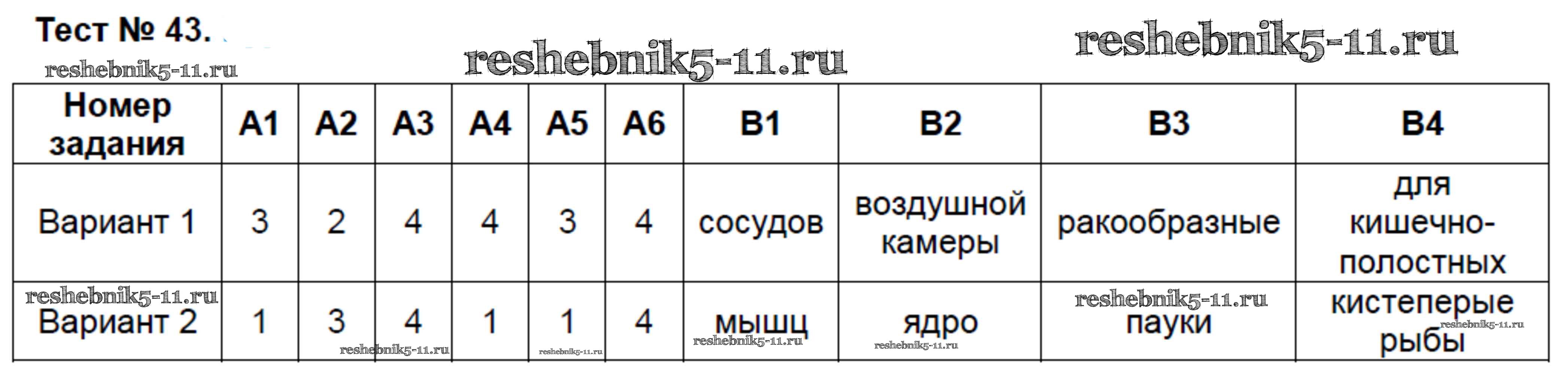 Готовая домашняя работа с ответами по Биологии за 7 класс Артемьева Контрольно-измерительные материалы (КИМ) ВАКО 2018 ФГОС - Тесты 43