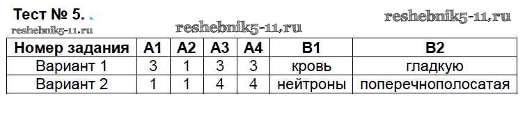 Готовая домашняя работа с ответами по Биологии за 7 класс Артемьева Контрольно-измерительные материалы (КИМ) ВАКО 2018 ФГОС - Тесты 5
