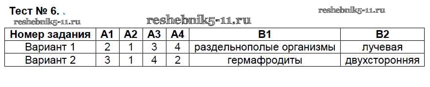 Готовая домашняя работа с ответами по Биологии за 7 класс Артемьева Контрольно-измерительные материалы (КИМ) ВАКО 2018 ФГОС - Тесты 6