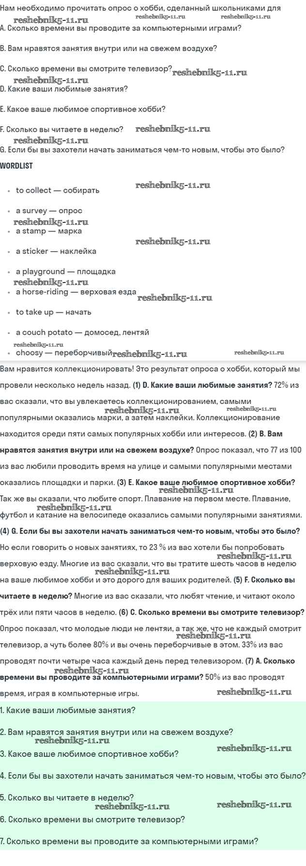 Готовая домашняя работа с ответами по Английскому языку за 7 класс Кузовлев, Лапа, Перегудова, Костина, Дуванова, Кобец Рабочая тетрадь УМК Просвещение 2016 ФГОС - Страницы 112