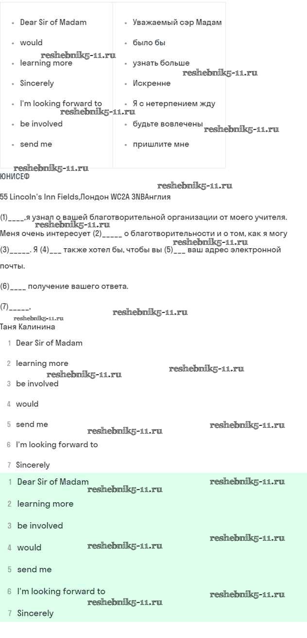 Готовая домашняя работа с ответами по Английскому языку за 7 класс Кузовлев, Лапа, Перегудова, Костина, Дуванова, Кобец Рабочая тетрадь УМК Просвещение 2016 ФГОС - Страницы 39