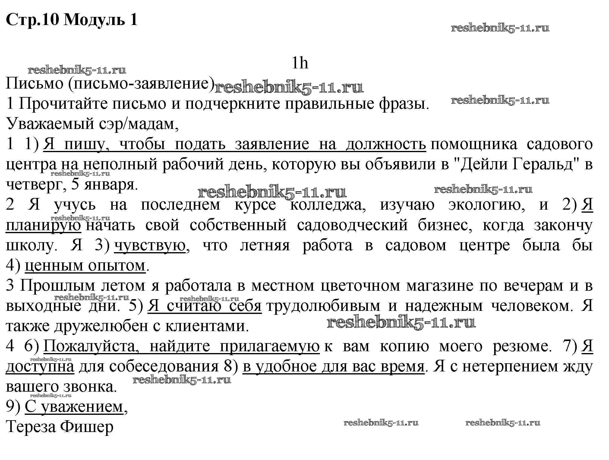 Готовая домашняя работа с ответами по Английскому языку за 7 класс Баранова, Дули, Эванс, Копылова, Мильруд Рабочая тетрадь Starlight Углубленный уровень Просвещение 2017 ФГОС - Module 1 стр.10