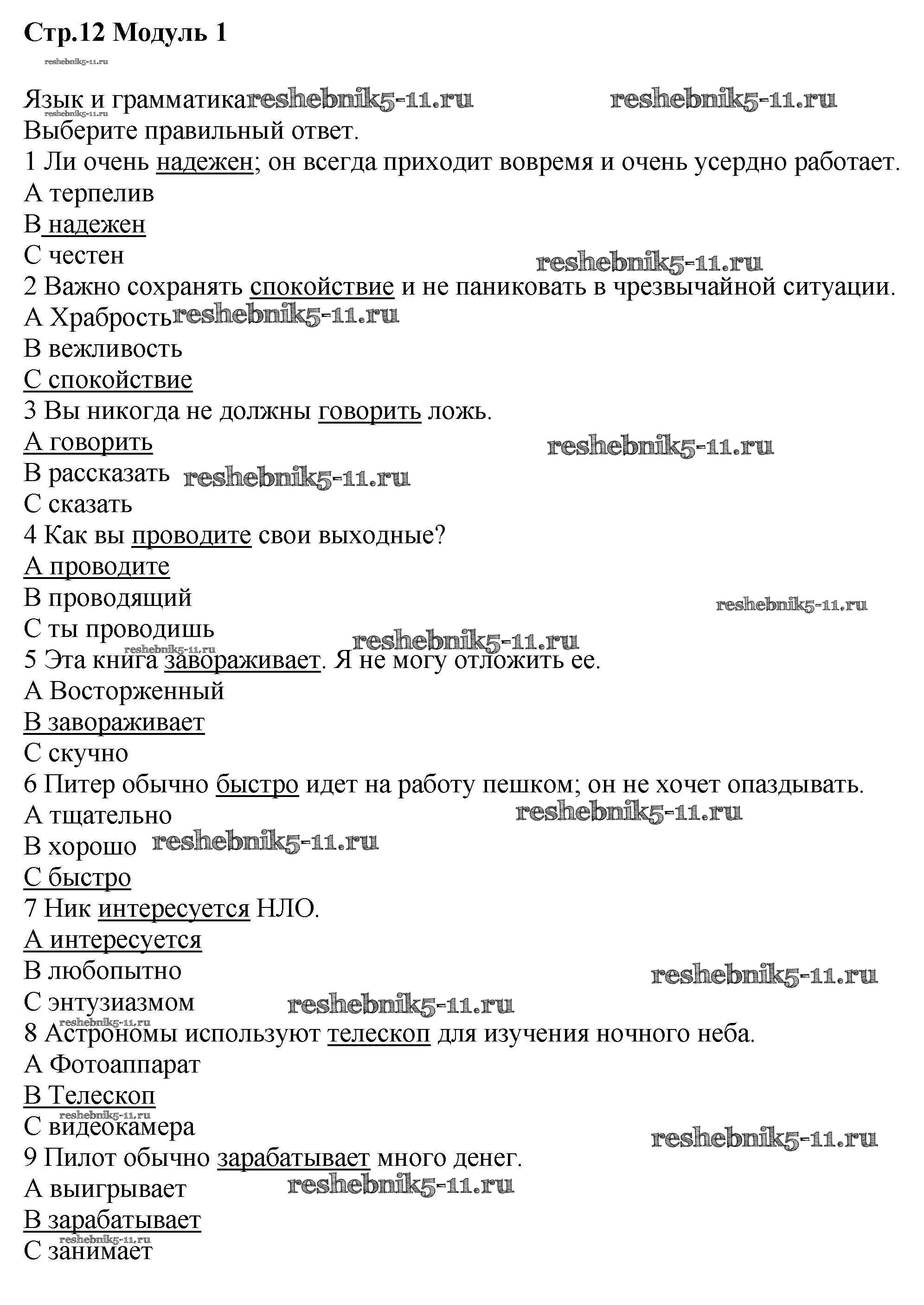 Английский язык за 7 класс Баранова Рабочая тетрадь Starlight Углубленный уровень Просвещение module 1 стр.12
