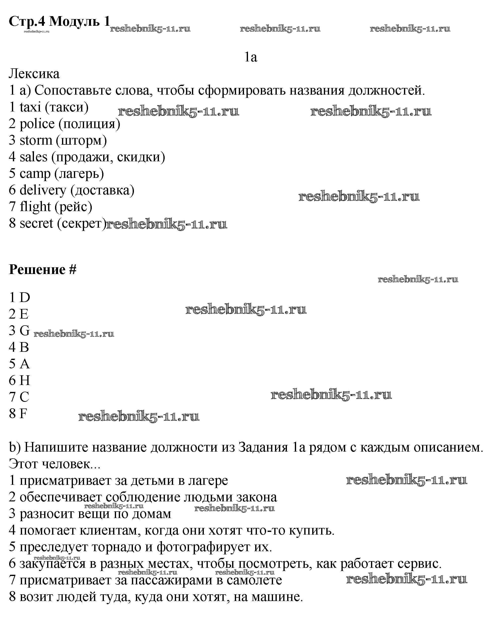 Готовая домашняя работа с ответами по Английскому языку за 7 класс Баранова, Дули, Эванс, Копылова, Мильруд Рабочая тетрадь Starlight Углубленный уровень Просвещение 2017 ФГОС - Module 1 стр.4