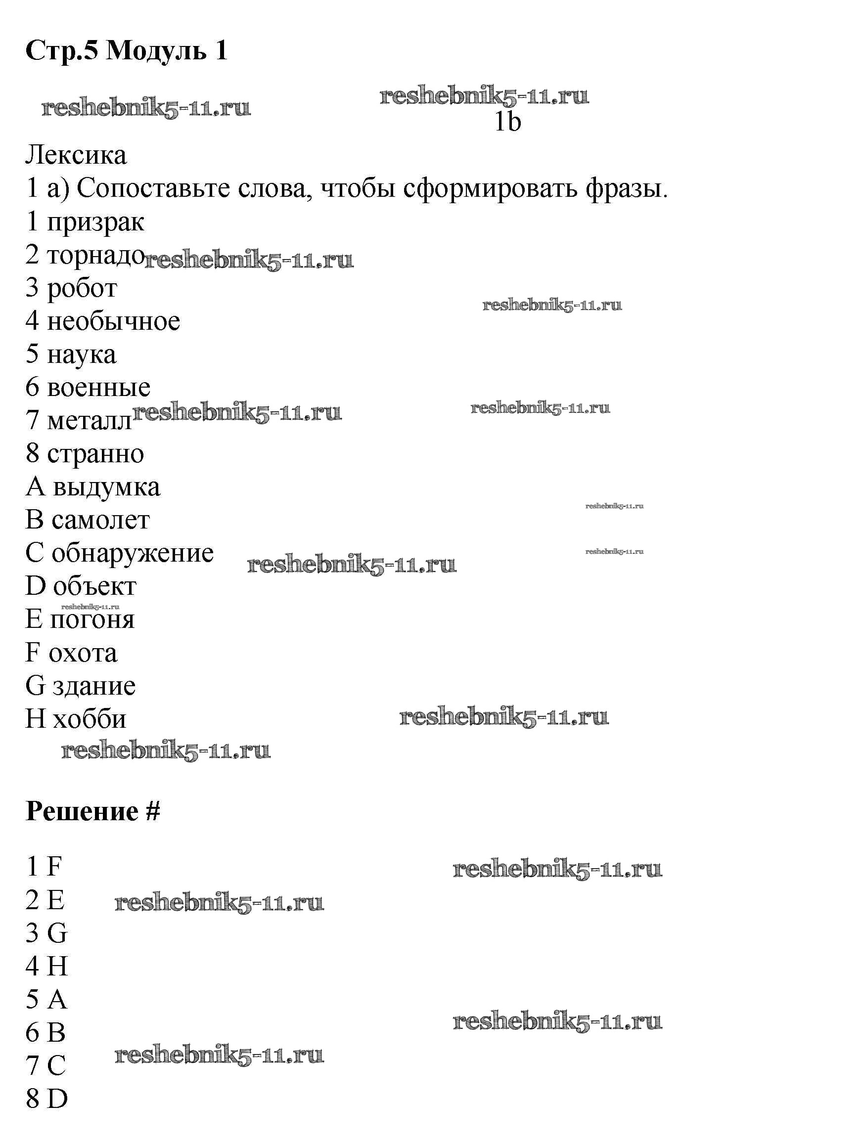 Готовая домашняя работа с ответами по Английскому языку за 7 класс Баранова, Дули, Эванс, Копылова, Мильруд Рабочая тетрадь Starlight Углубленный уровень Просвещение 2017 ФГОС - Module 1 стр.5