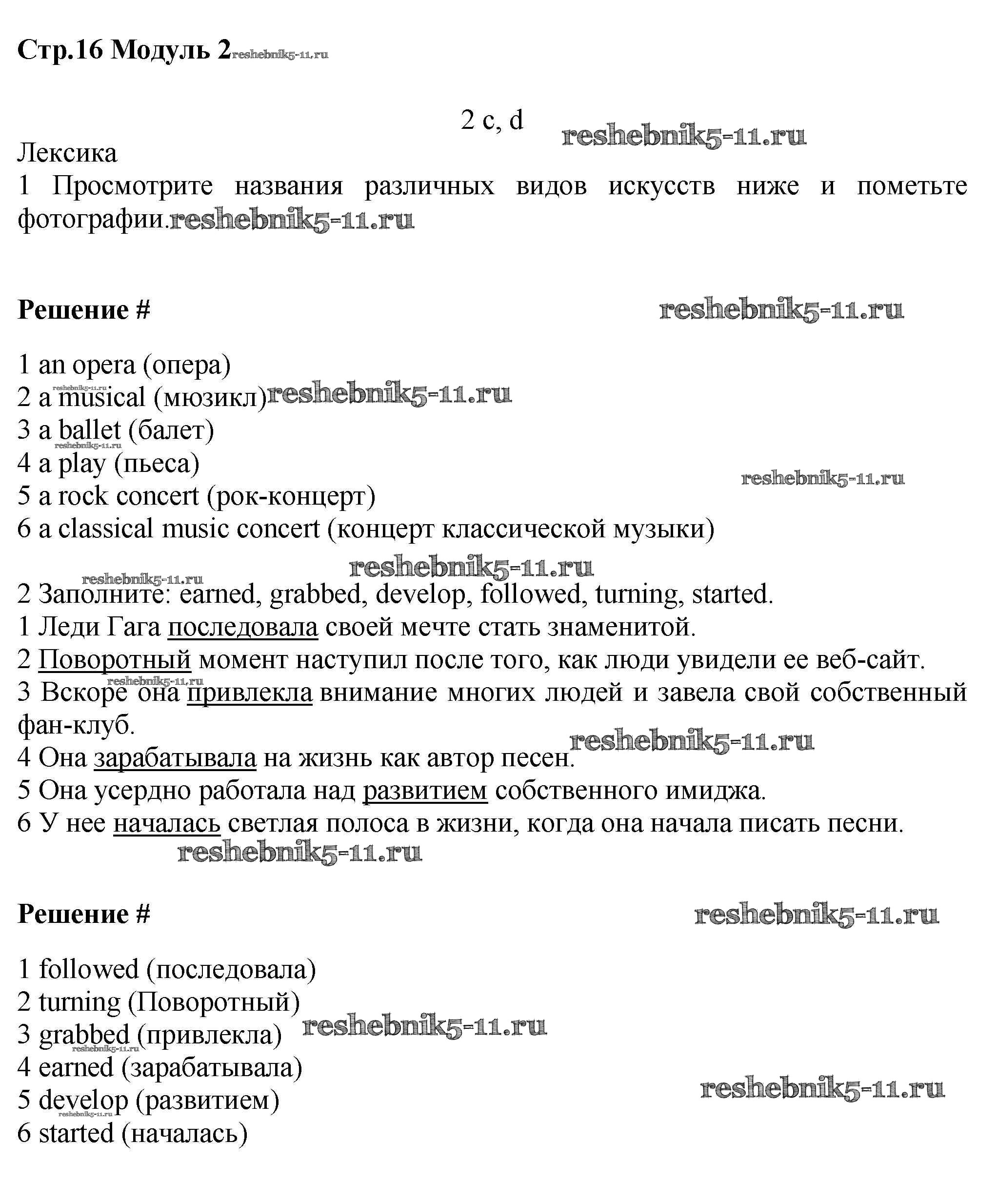 Готовая домашняя работа с ответами по Английскому языку за 7 класс Баранова, Дули, Эванс, Копылова, Мильруд Рабочая тетрадь Starlight Углубленный уровень Просвещение 2017 ФГОС - Module 2 стр.16