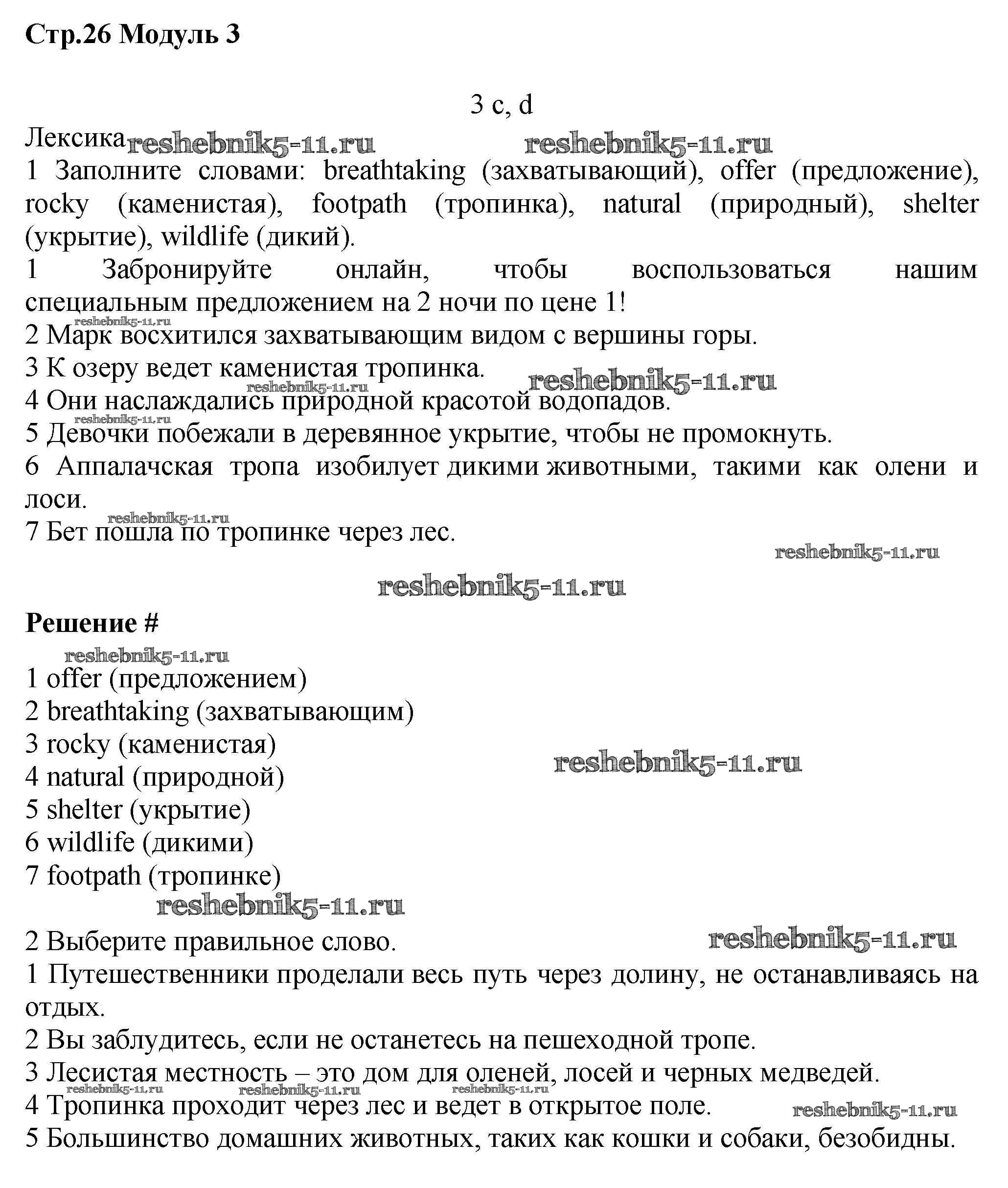 Готовая домашняя работа с ответами по Английскому языку за 7 класс Баранова, Дули, Эванс, Копылова, Мильруд Рабочая тетрадь Starlight Углубленный уровень Просвещение 2017 ФГОС - Module 3 стр.26