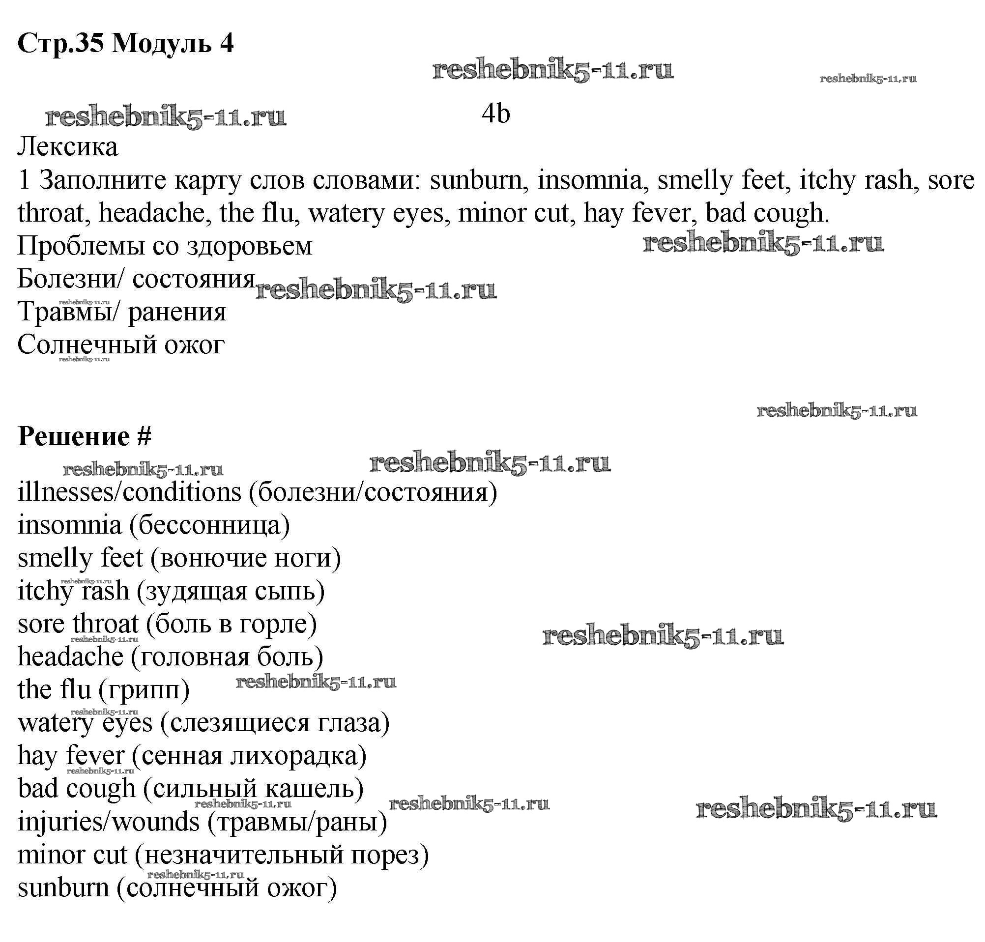 Готовая домашняя работа с ответами по Английскому языку за 7 класс Баранова, Дули, Эванс, Копылова, Мильруд Рабочая тетрадь Starlight Углубленный уровень Просвещение 2017 ФГОС - Module 4 стр.35