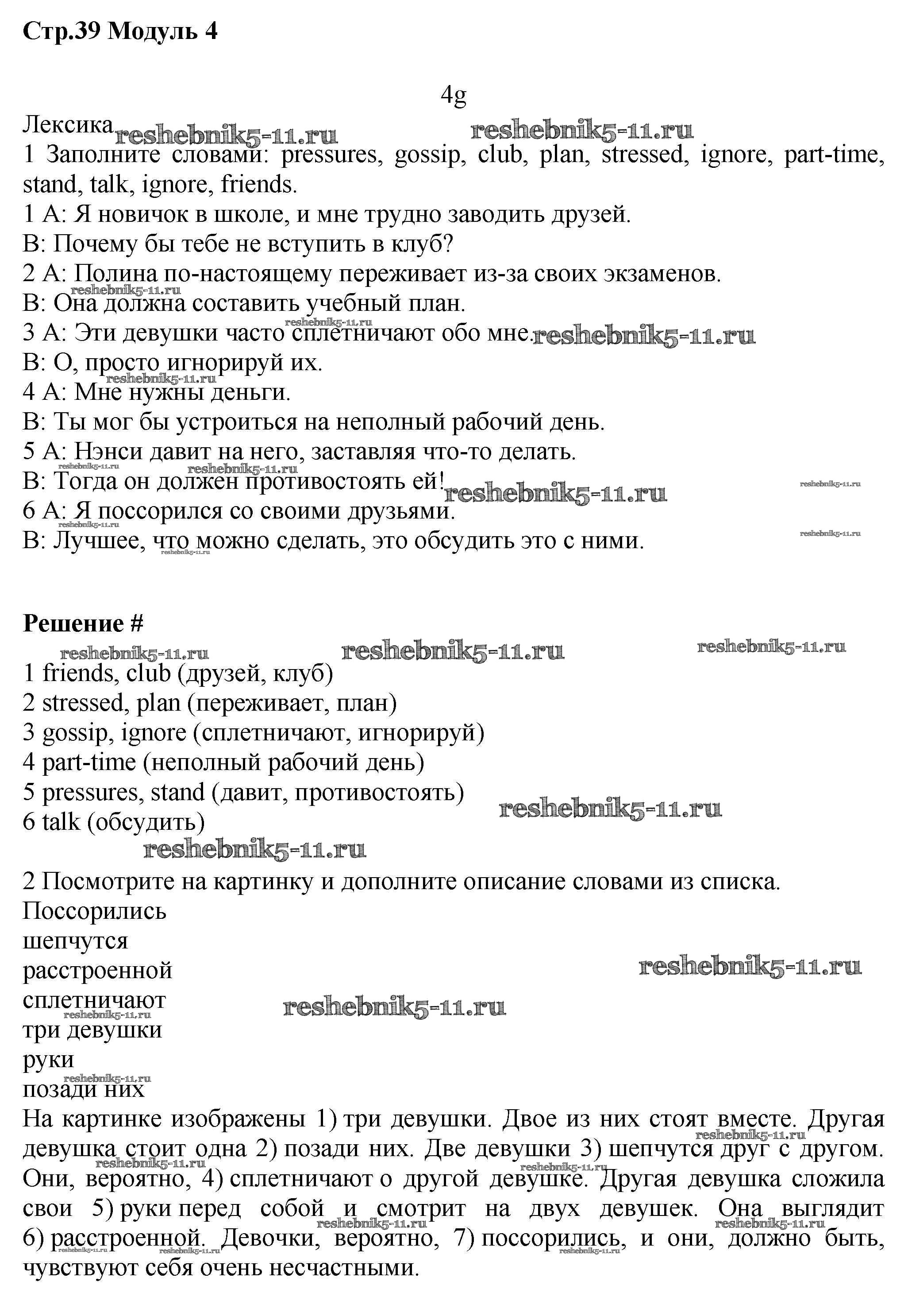 Готовая домашняя работа с ответами по Английскому языку за 7 класс Баранова, Дули, Эванс, Копылова, Мильруд Рабочая тетрадь Starlight Углубленный уровень Просвещение 2017 ФГОС - Module 4 стр.39