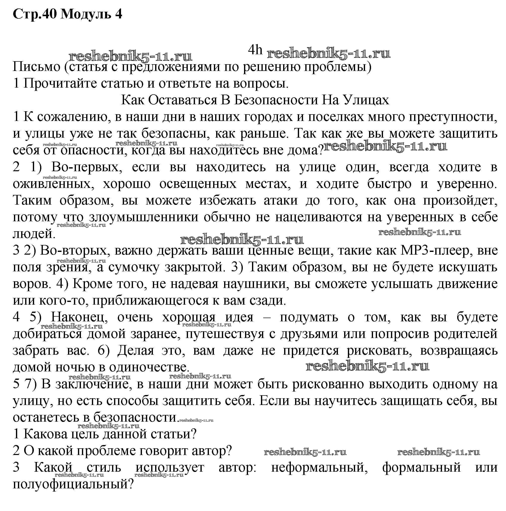 Готовая домашняя работа с ответами по Английскому языку за 7 класс Баранова, Дули, Эванс, Копылова, Мильруд Рабочая тетрадь Starlight Углубленный уровень Просвещение 2017 ФГОС - Module 4 стр.40