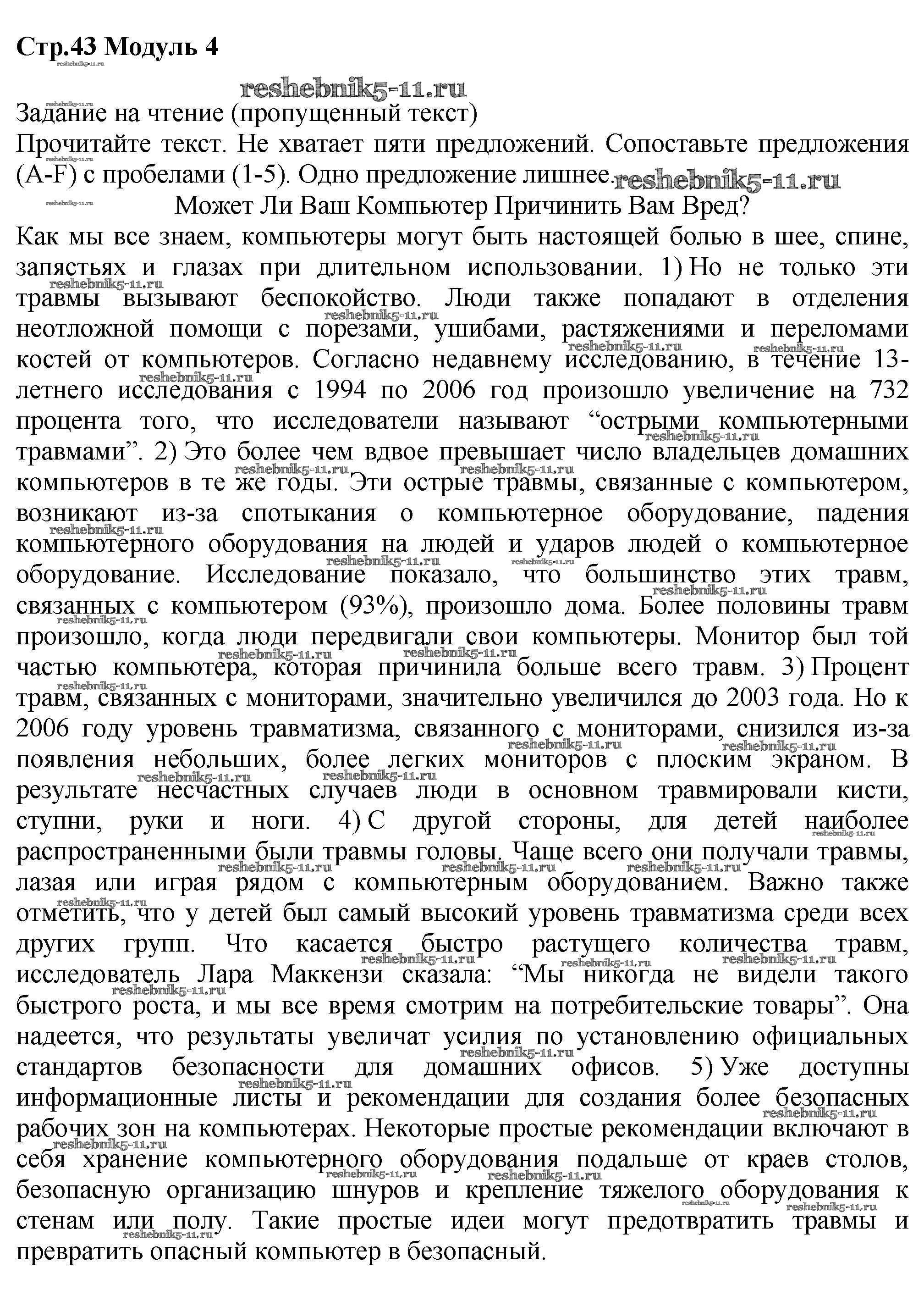 Готовая домашняя работа с ответами по Английскому языку за 7 класс Баранова, Дули, Эванс, Копылова, Мильруд Рабочая тетрадь Starlight Углубленный уровень Просвещение 2017 ФГОС - Module 4 стр.43