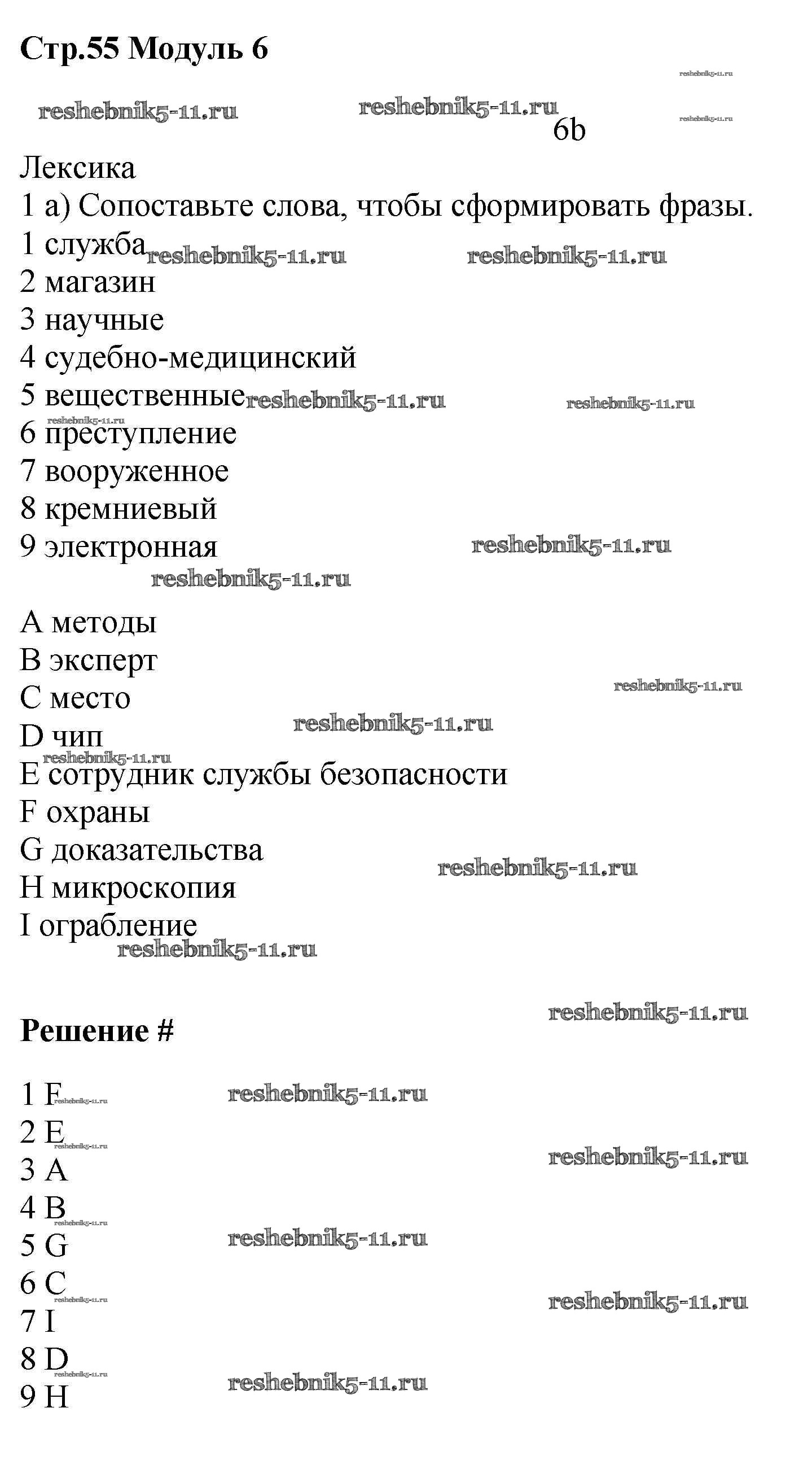 Готовая домашняя работа с ответами по Английскому языку за 7 класс Баранова, Дули, Эванс, Копылова, Мильруд Рабочая тетрадь Starlight Углубленный уровень Просвещение 2017 ФГОС - Module 6 стр.55