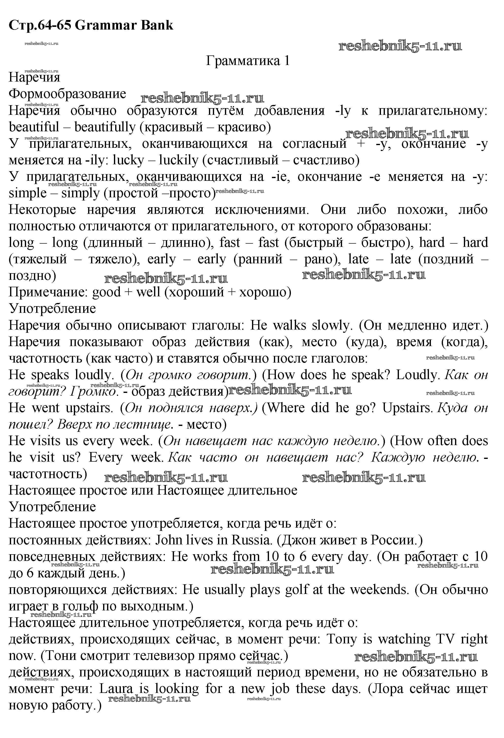 Готовая домашняя работа с ответами по Английскому языку за 7 класс Баранова, Дули, Эванс, Копылова, Мильруд Рабочая тетрадь Starlight Углубленный уровень Просвещение 2017 ФГОС - Grammar Bank стр.64-65