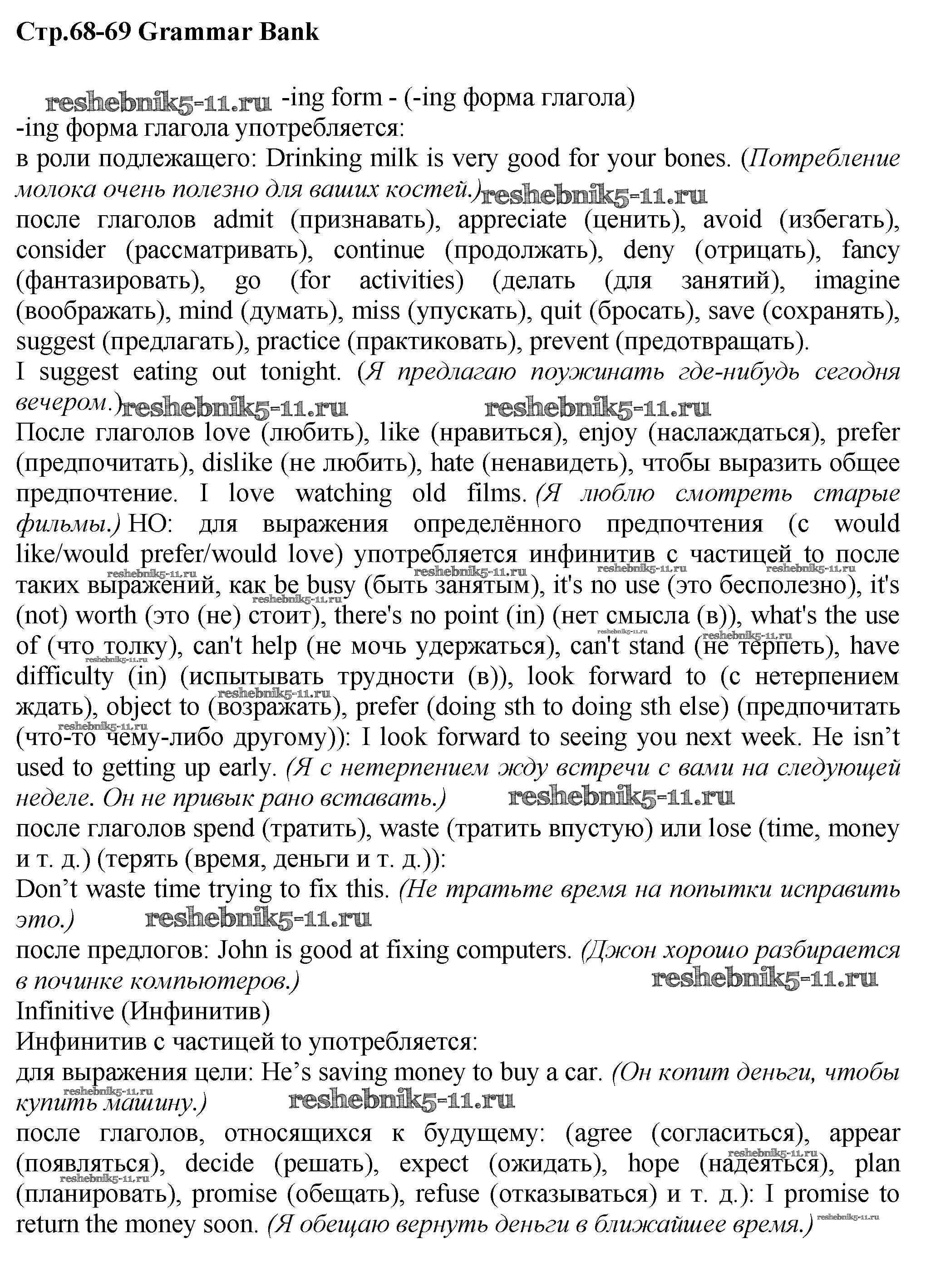 Готовая домашняя работа с ответами по Английскому языку за 7 класс Баранова, Дули, Эванс, Копылова, Мильруд Рабочая тетрадь Starlight Углубленный уровень Просвещение 2017 ФГОС - Grammar Bank стр.68-69