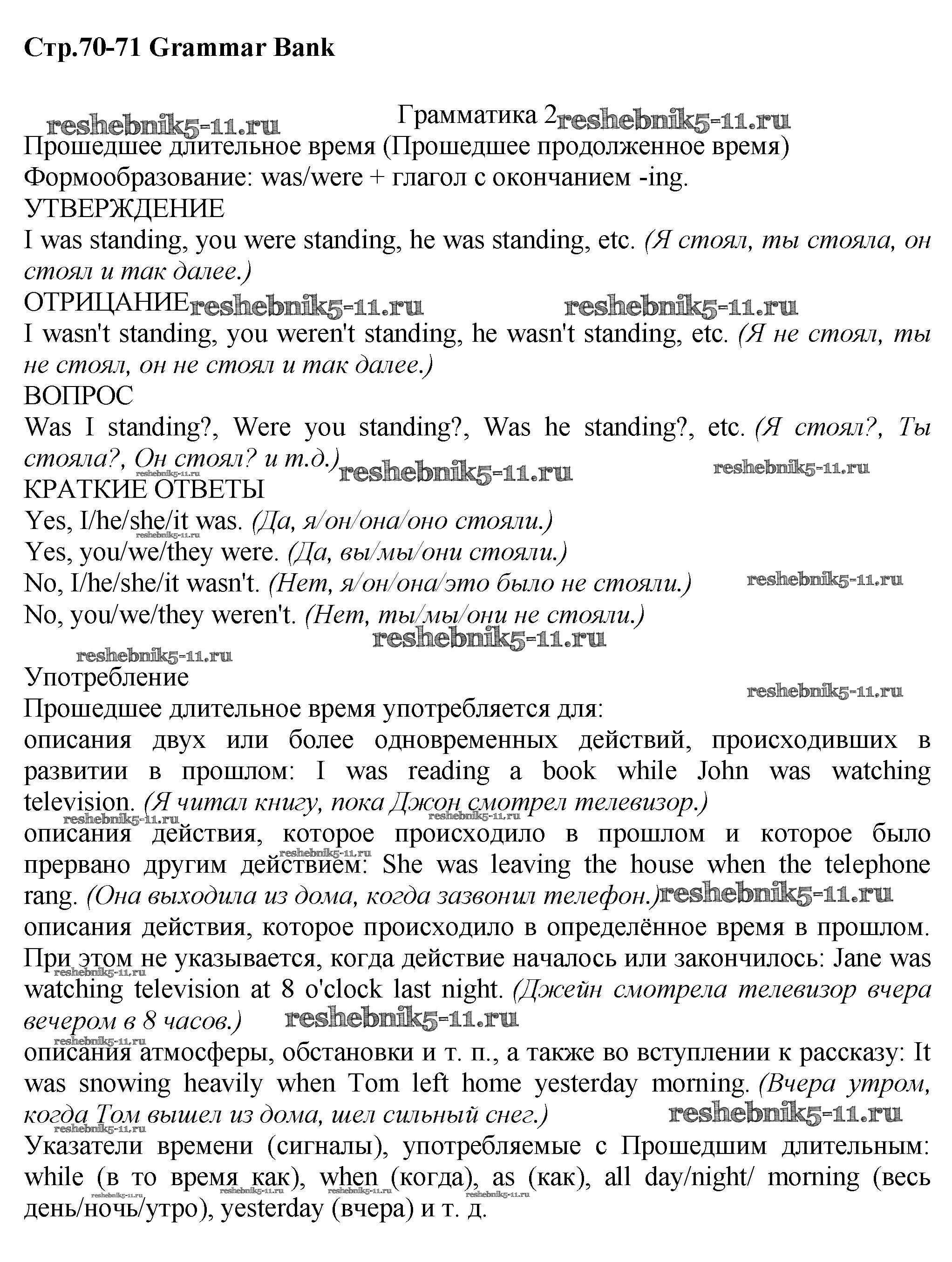 Готовая домашняя работа с ответами по Английскому языку за 7 класс Баранова, Дули, Эванс, Копылова, Мильруд Рабочая тетрадь Starlight Углубленный уровень Просвещение 2017 ФГОС - Grammar Bank стр.70-71