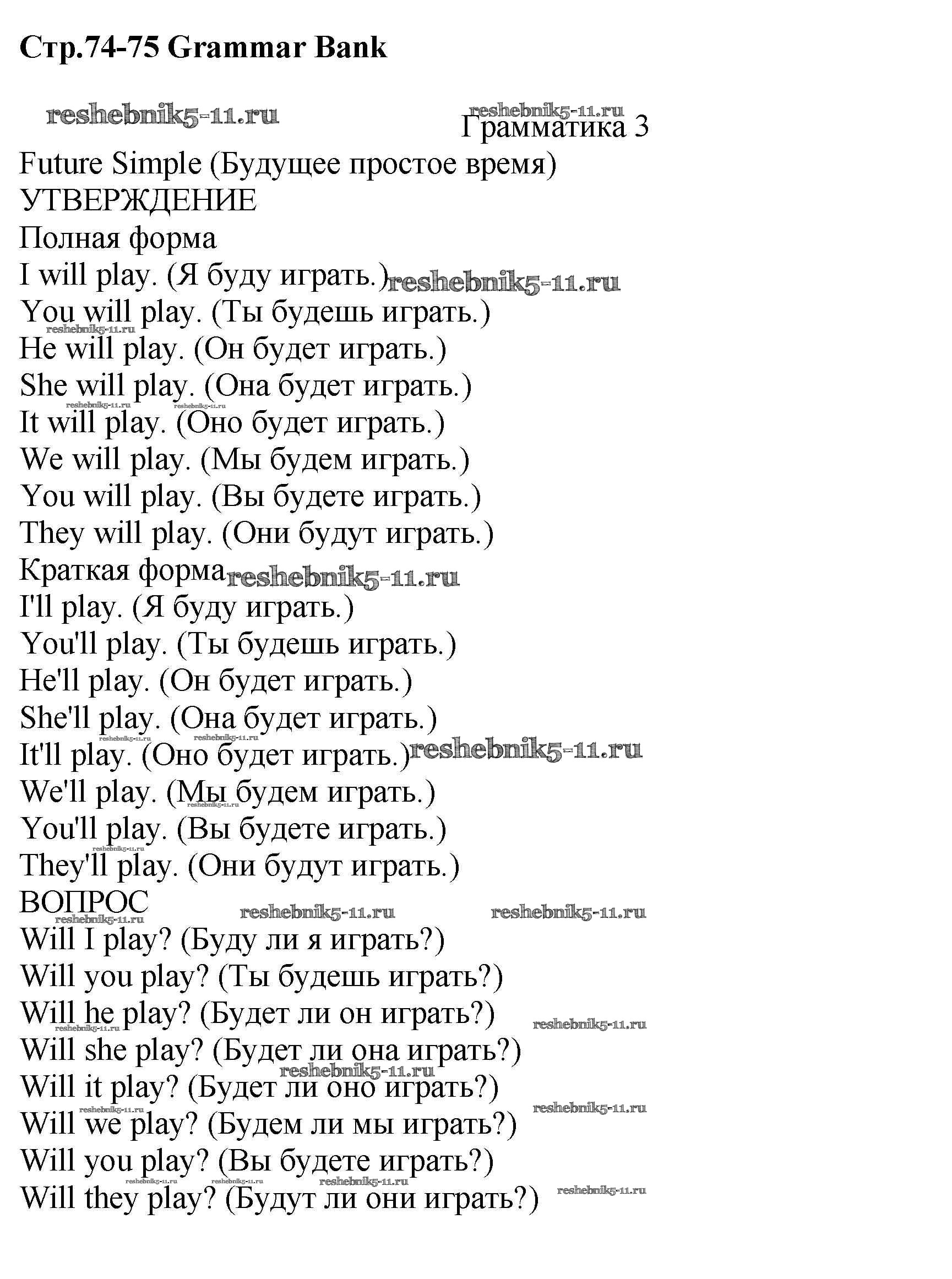 Решебник / grammar bank / стр.74-75