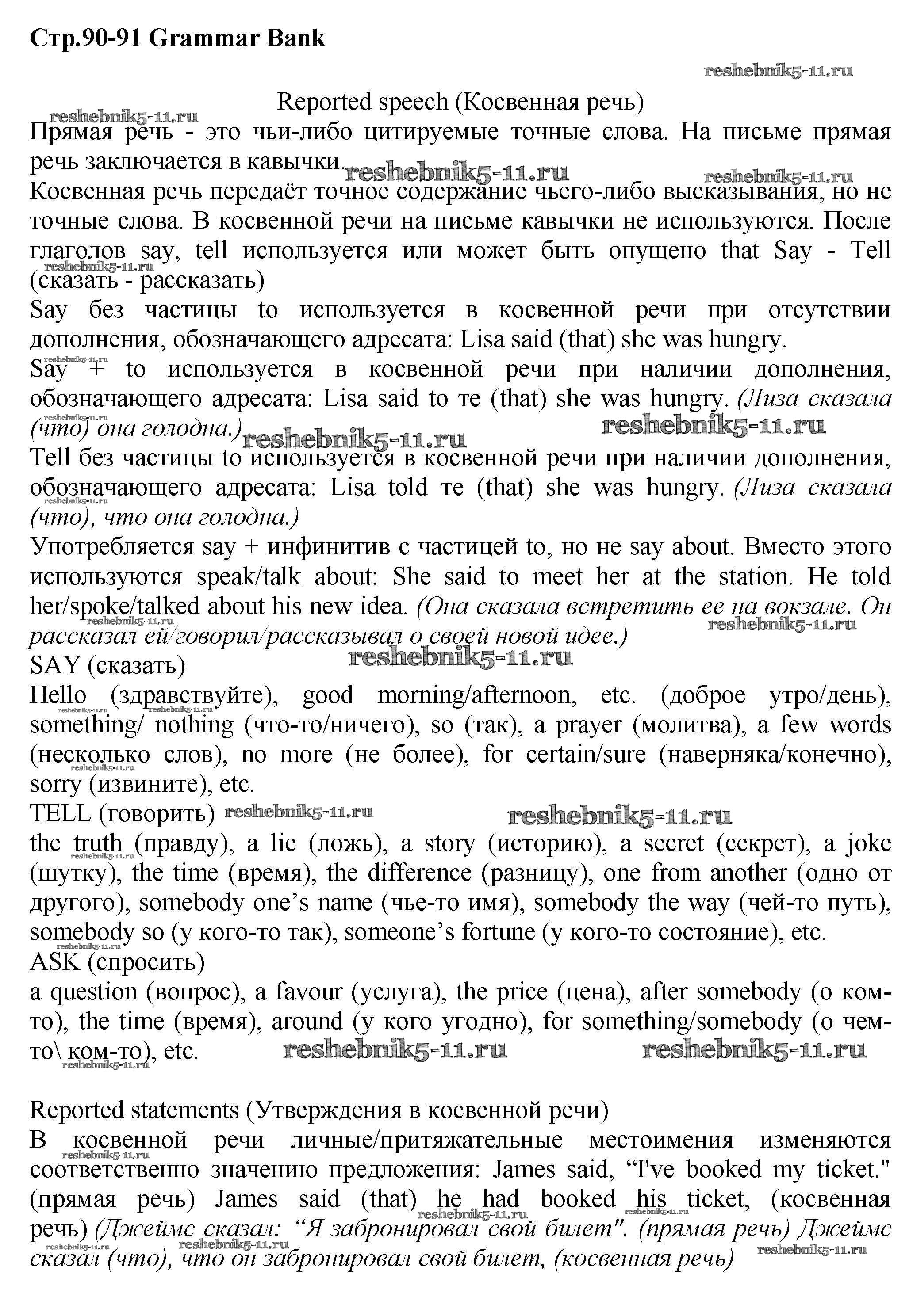 Готовая домашняя работа с ответами по Английскому языку за 7 класс Баранова, Дули, Эванс, Копылова, Мильруд Рабочая тетрадь Starlight Углубленный уровень Просвещение 2017 ФГОС - Grammar Bank стр.90-91