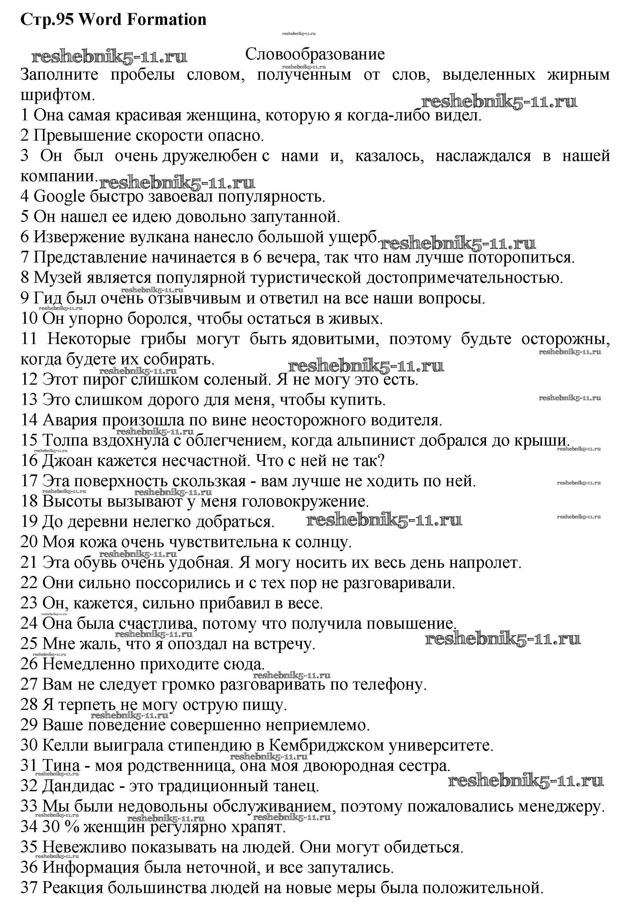 Готовая домашняя работа с ответами по Английскому языку за 7 класс Баранова, Дули, Эванс, Копылова, Мильруд Рабочая тетрадь Starlight Углубленный уровень Просвещение 2017 ФГОС - Word Formation стр.95