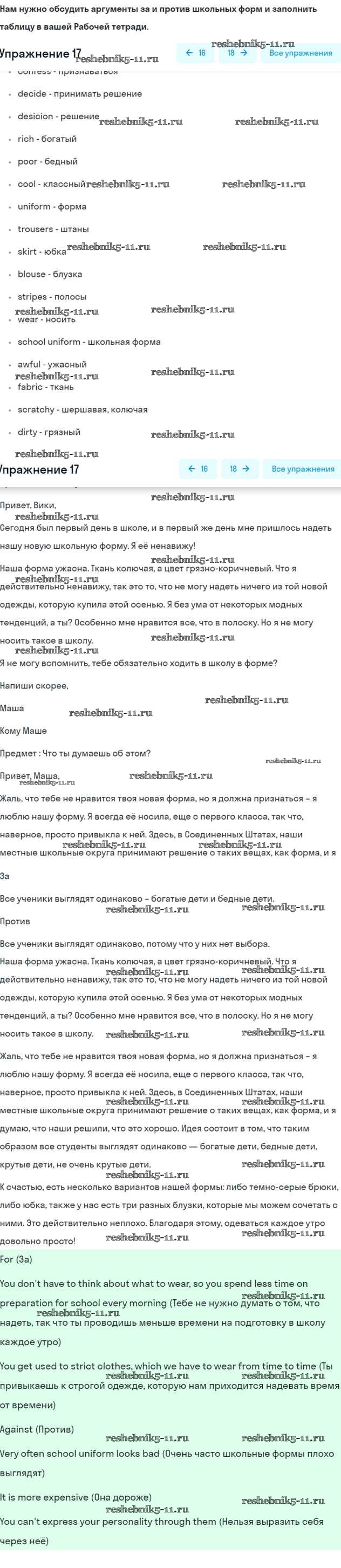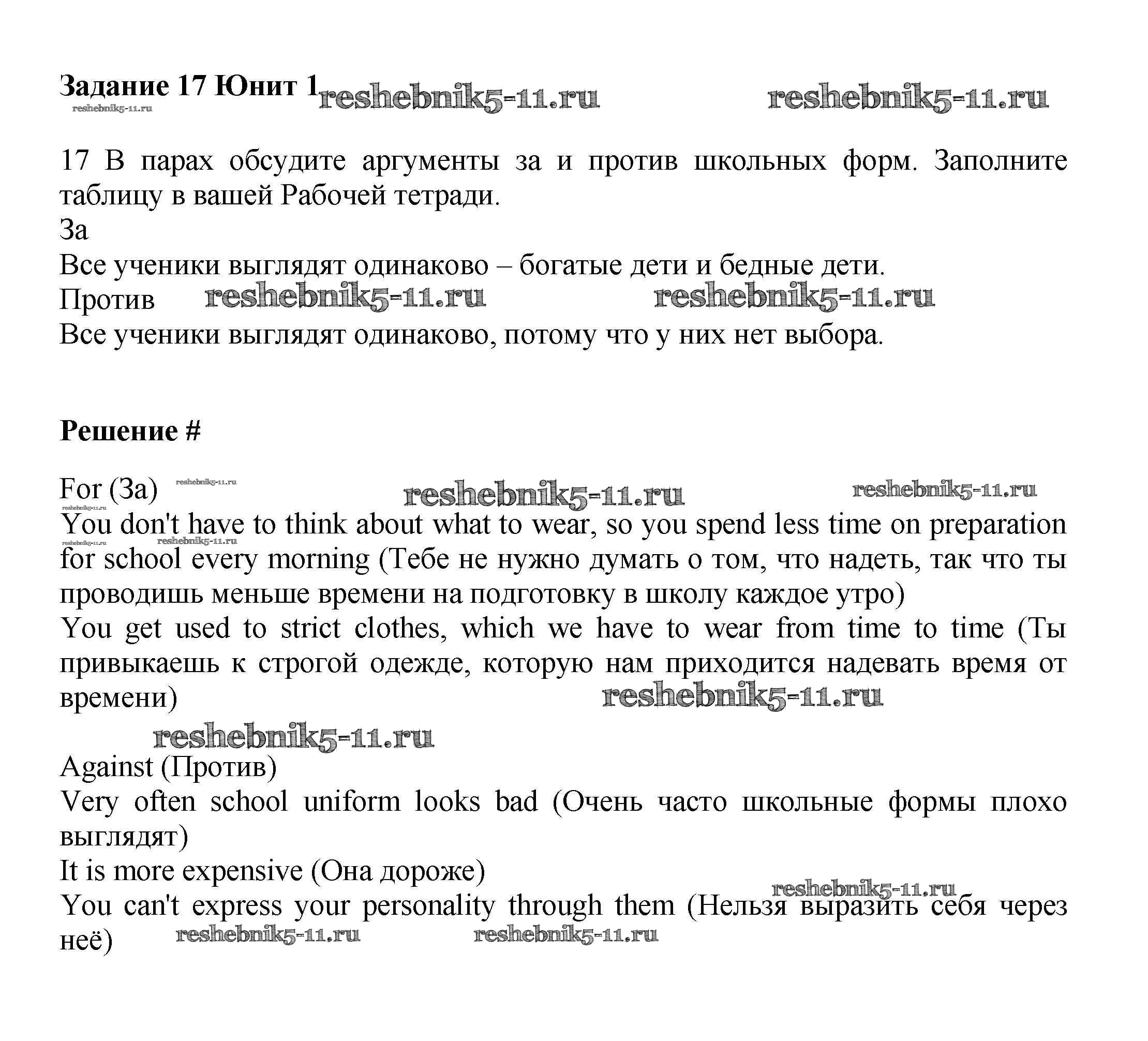 Готовая домашняя работа с ответами по Английскому языку за 7 класс Вербицкая, Гаярделли, Редли, Миндрул, Савчук Учебник Forward Часть 1, 2 Вентана-граф 2017 ФГОС - Unit 1. Comparing schools in different countries 17