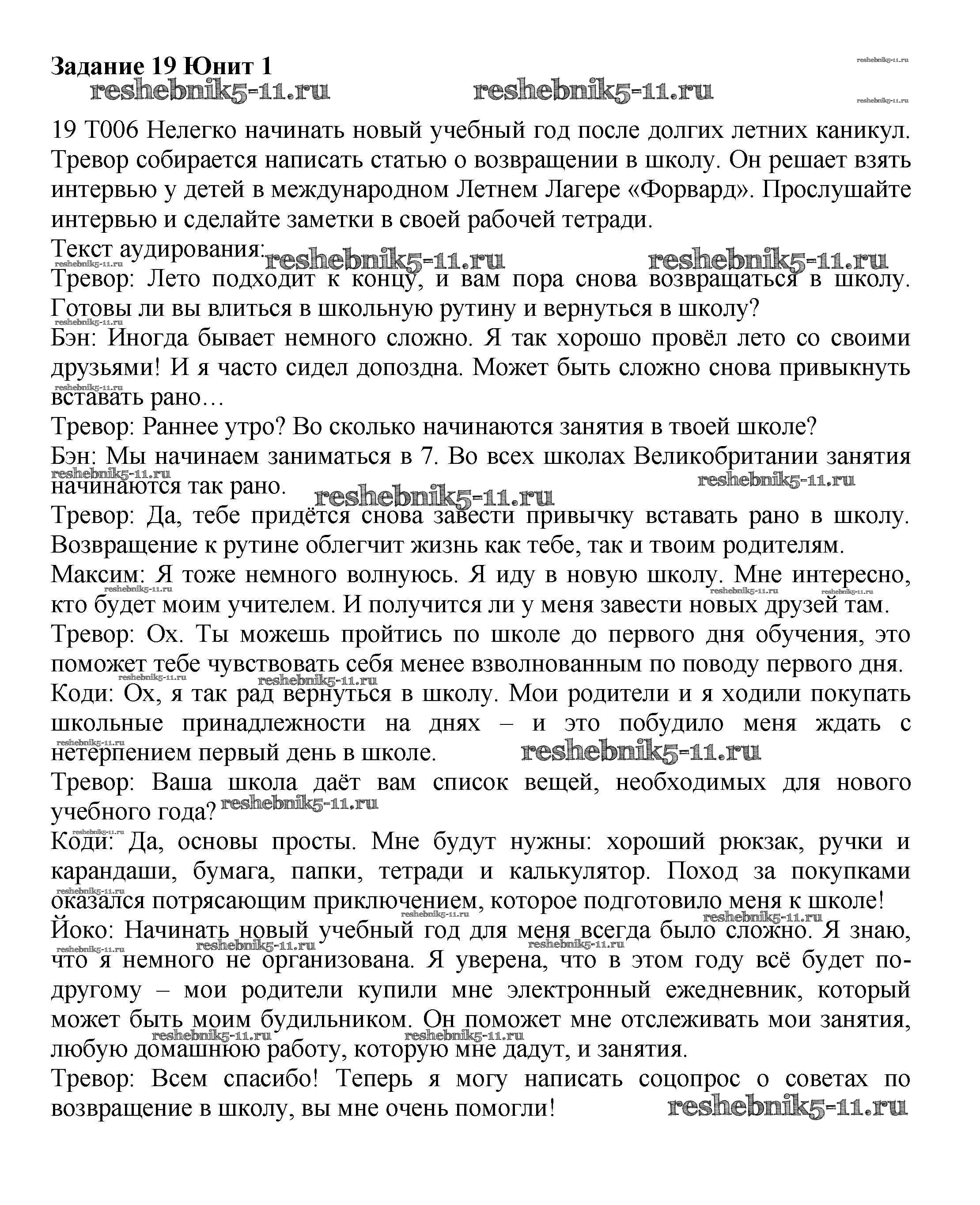 Английский язык за 7 класс Вербицкая Учебник Forward Вентана-граф unit 1 19