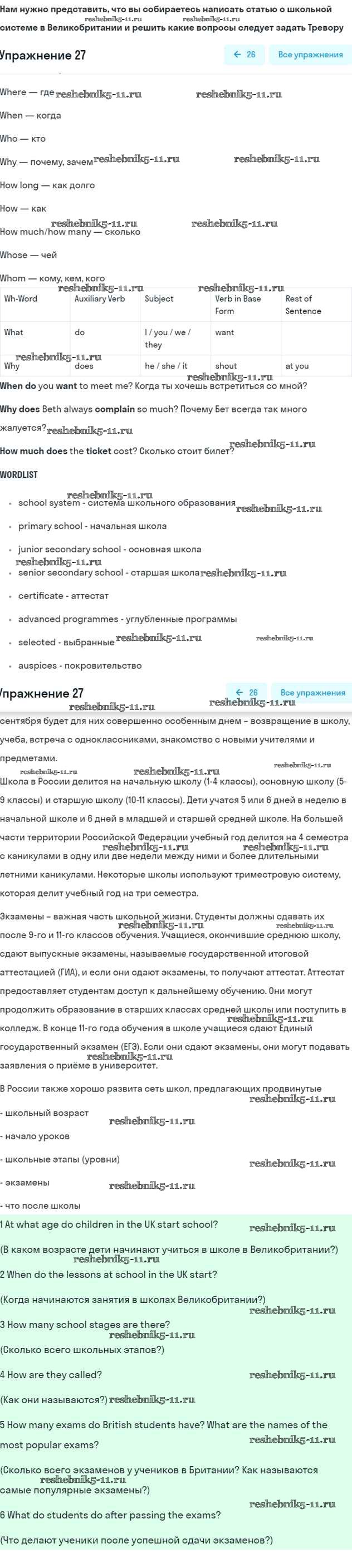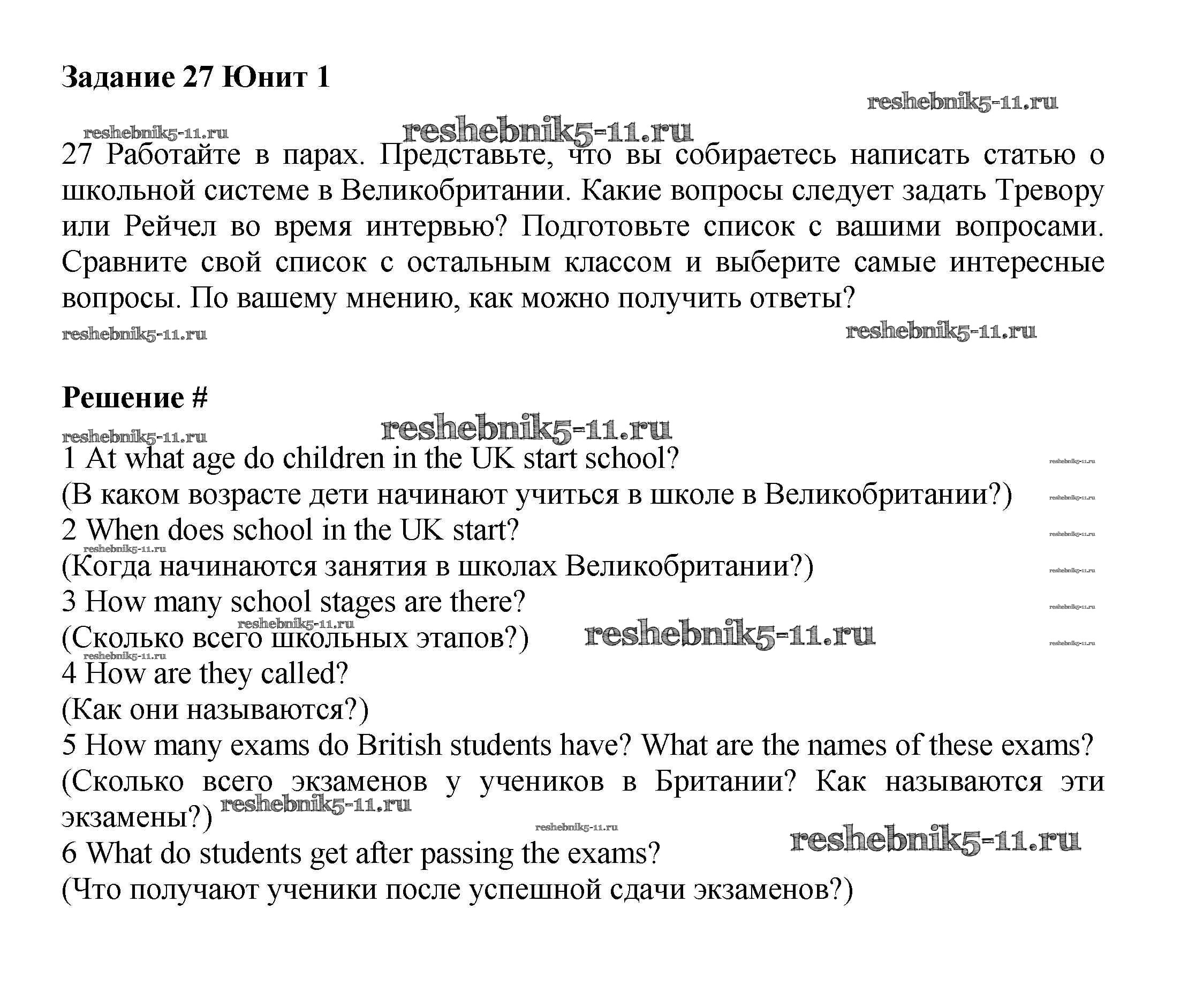 Готовая домашняя работа с ответами по Английскому языку за 7 класс Вербицкая, Гаярделли, Редли, Миндрул, Савчук Учебник Forward Часть 1, 2 Вентана-граф 2017 ФГОС - Unit 1. Comparing schools in different countries 27