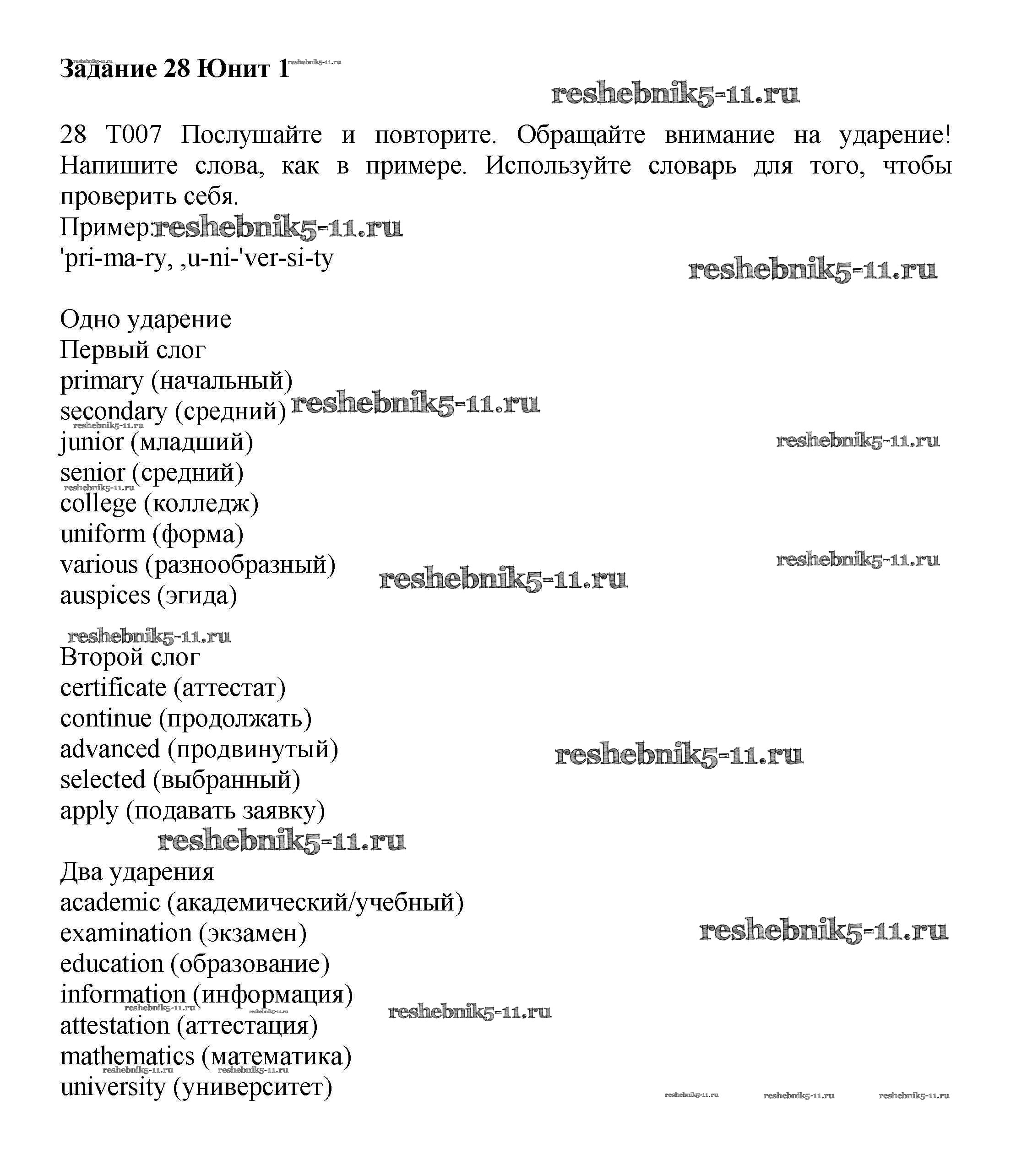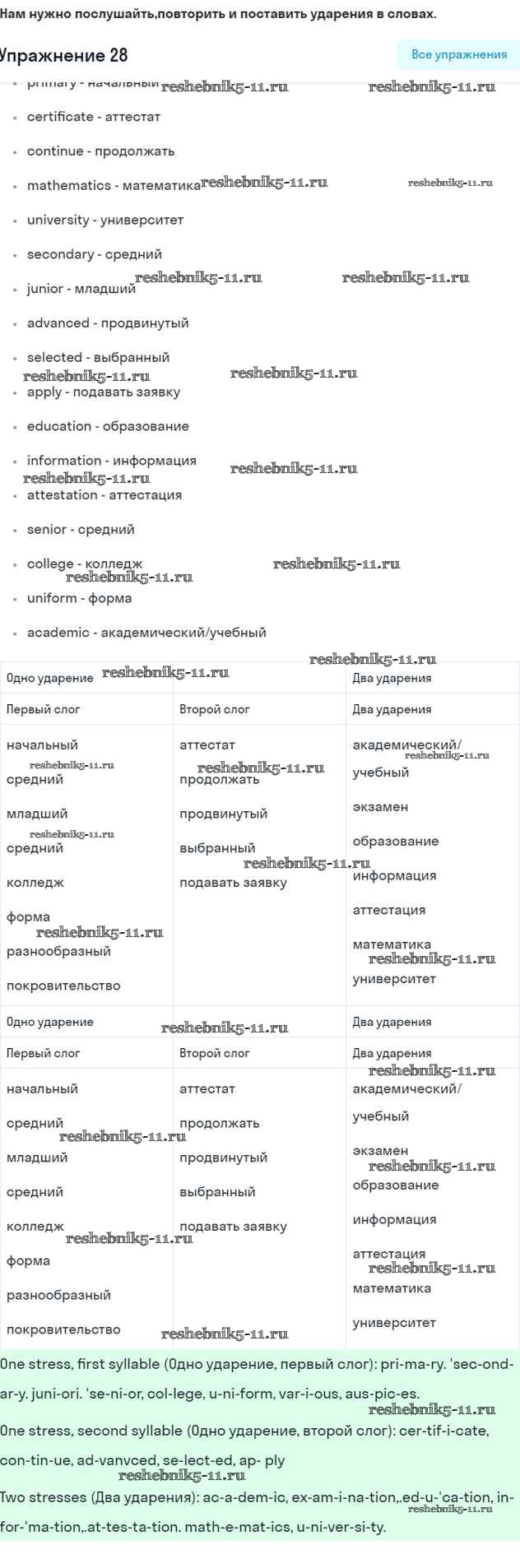 Готовая домашняя работа с ответами по Английскому языку за 7 класс Вербицкая, Гаярделли, Редли, Миндрул, Савчук Учебник Forward Часть 1, 2 Вентана-граф 2017 ФГОС - Unit 1. Comparing schools in different countries 28
