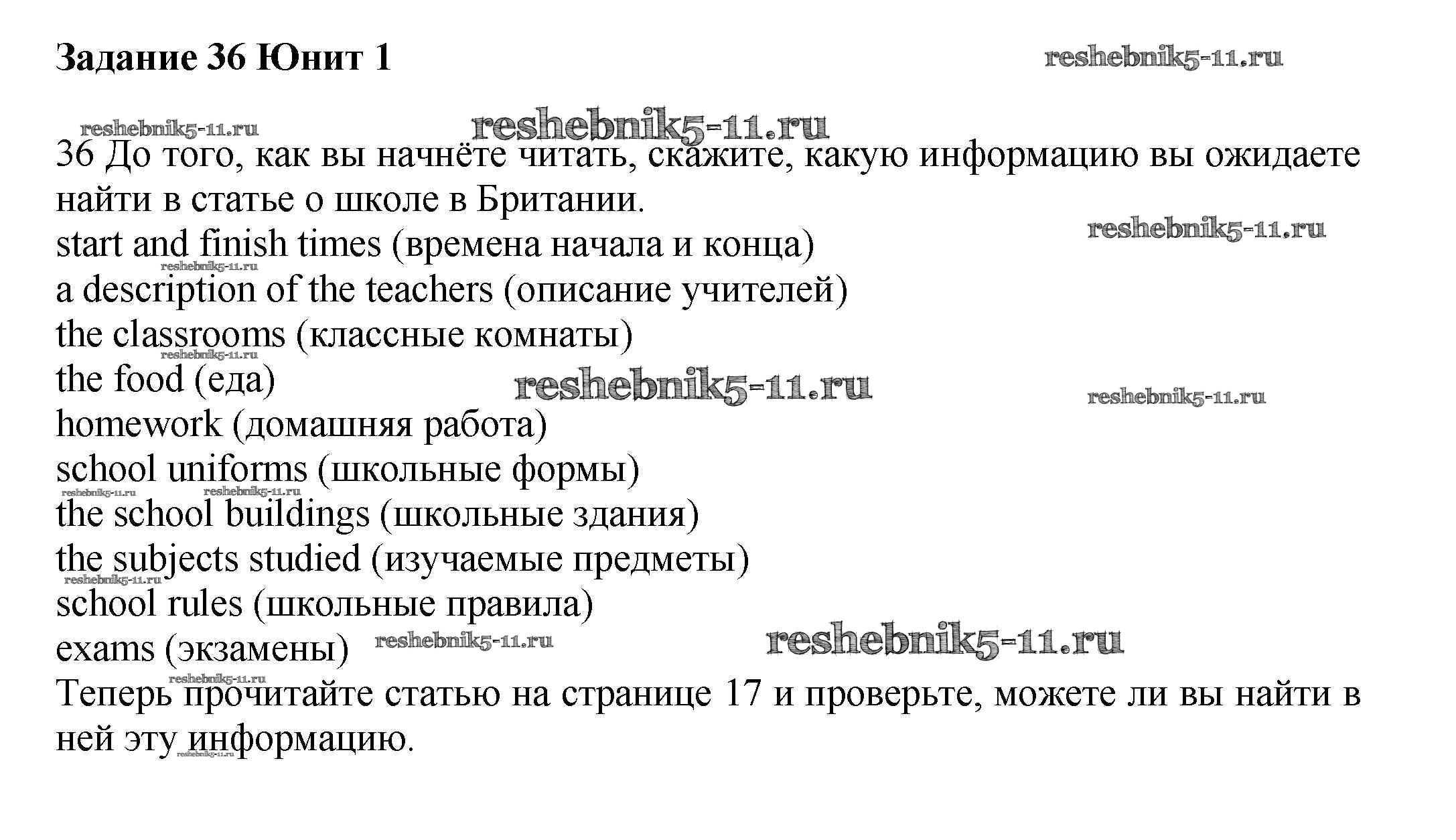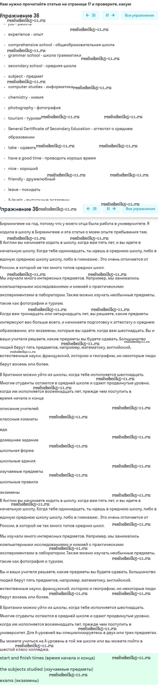 Готовая домашняя работа с ответами по Английскому языку за 7 класс Вербицкая, Гаярделли, Редли, Миндрул, Савчук Учебник Forward Часть 1, 2 Вентана-граф 2017 ФГОС - Unit 1. Comparing schools in different countries 36
