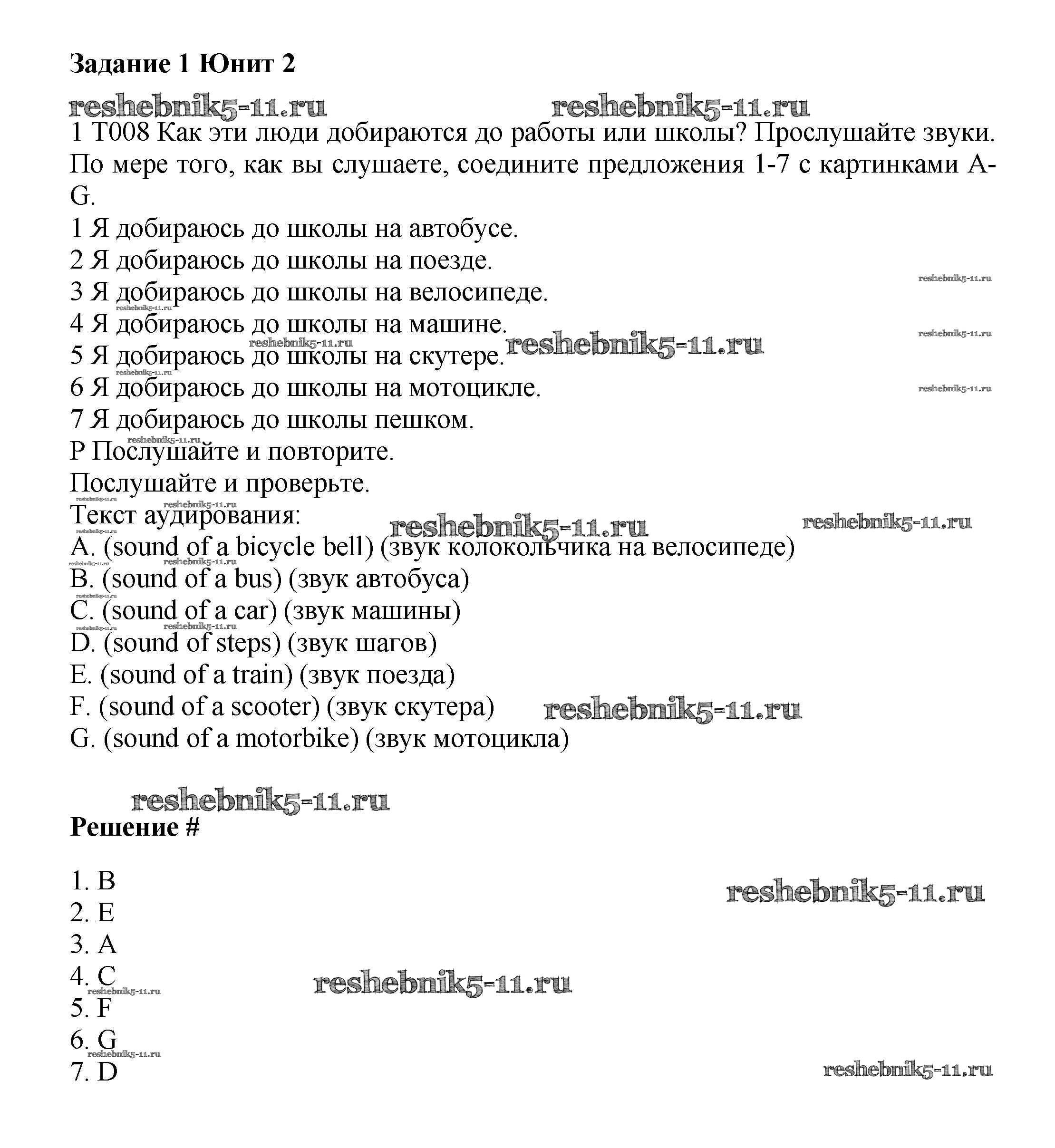 Готовая домашняя работа с ответами по Английскому языку за 7 класс Вербицкая, Гаярделли, Редли, Миндрул, Савчук Учебник Forward Часть 1, 2 Вентана-граф 2017 ФГОС - Unit 2. The best way to get to school 1