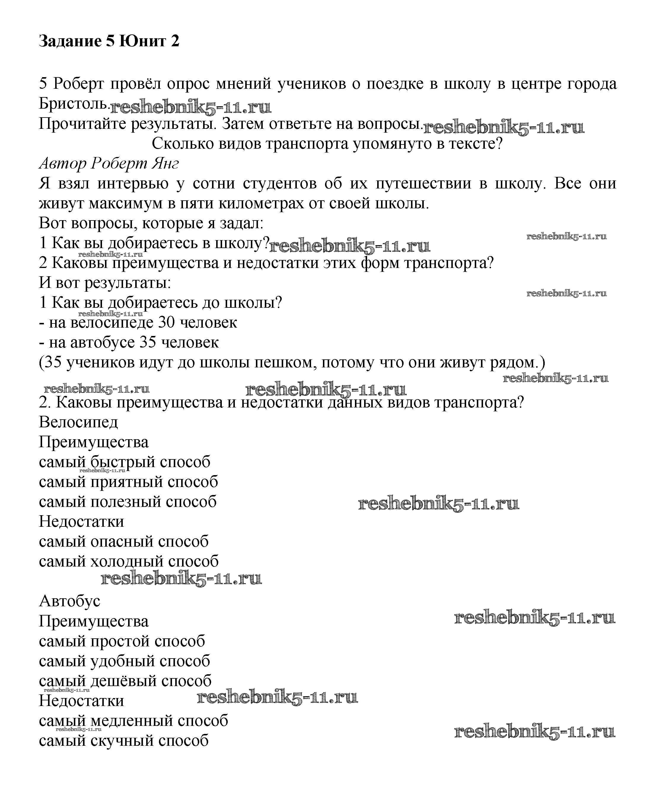 Готовая домашняя работа с ответами по Английскому языку за 7 класс Вербицкая, Гаярделли, Редли, Миндрул, Савчук Учебник Forward Часть 1, 2 Вентана-граф 2017 ФГОС - Unit 2. The best way to get to school 5