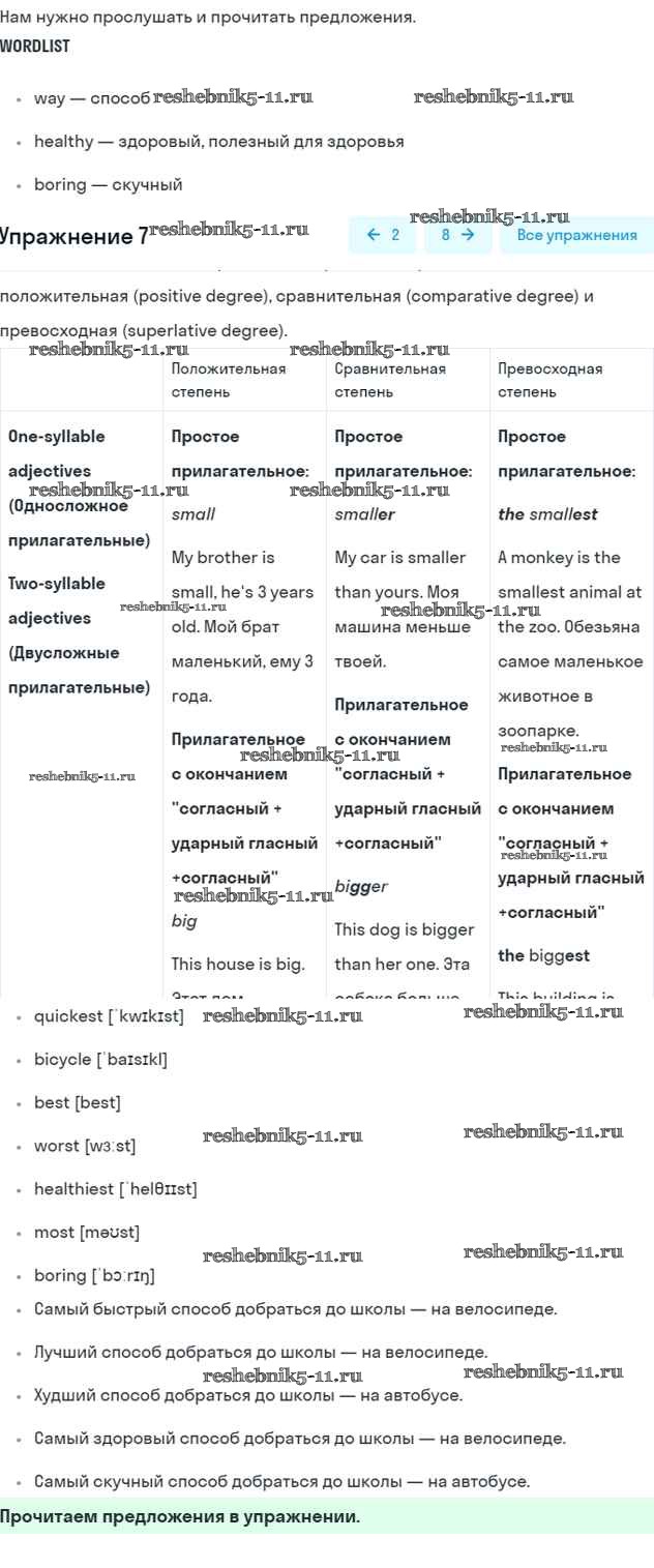 Готовая домашняя работа с ответами по Английскому языку за 7 класс Вербицкая, Гаярделли, Редли, Миндрул, Савчук Учебник Forward Часть 1, 2 Вентана-граф 2017 ФГОС - Unit 2. The best way to get to school 7