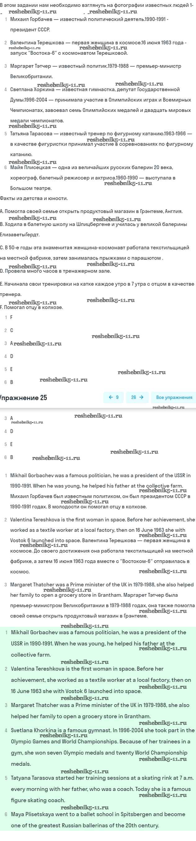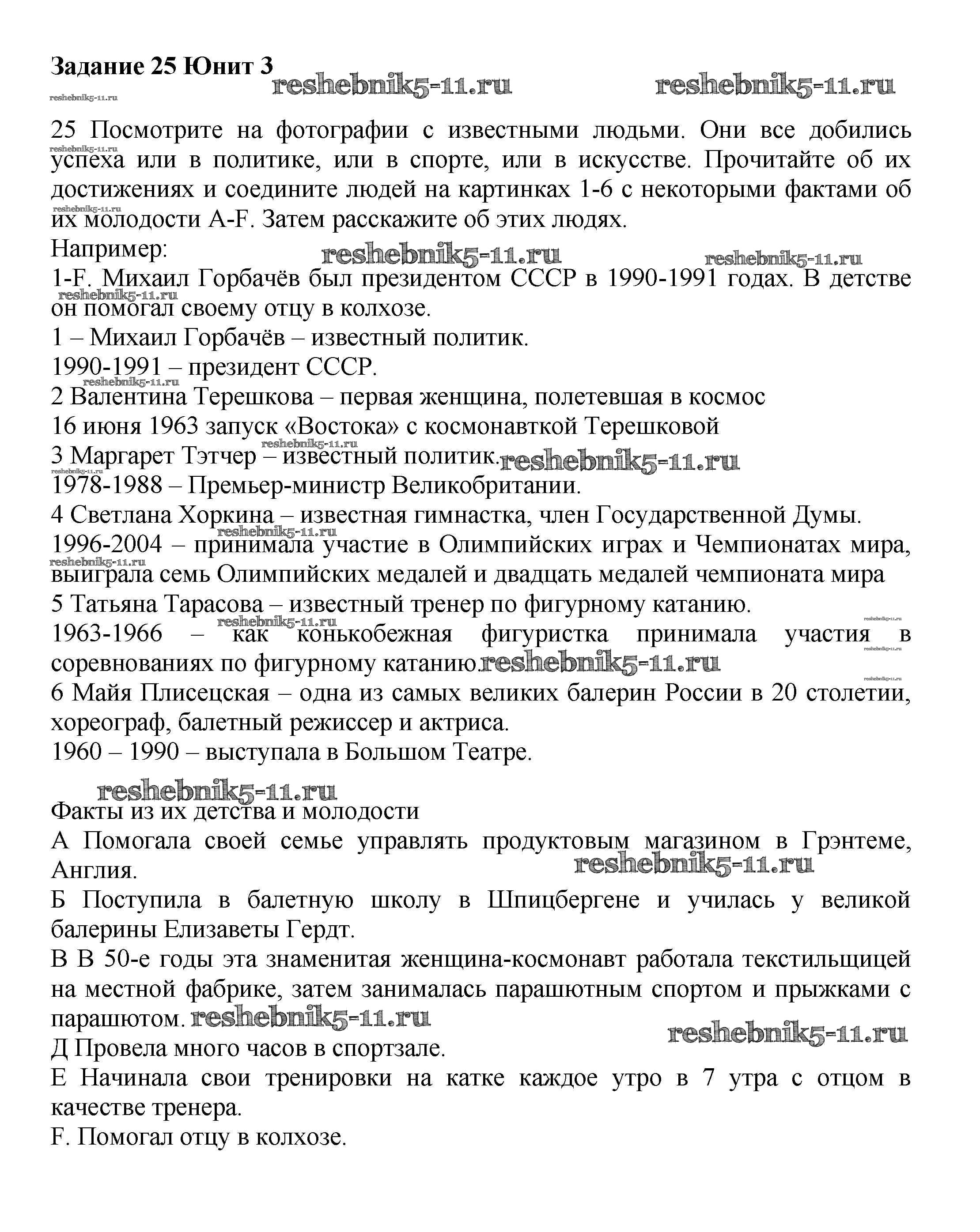 Готовая домашняя работа с ответами по Английскому языку за 7 класс Вербицкая, Гаярделли, Редли, Миндрул, Савчук Учебник Forward Часть 1, 2 Вентана-граф 2017 ФГОС - Unit 3. Talking about old times 25
