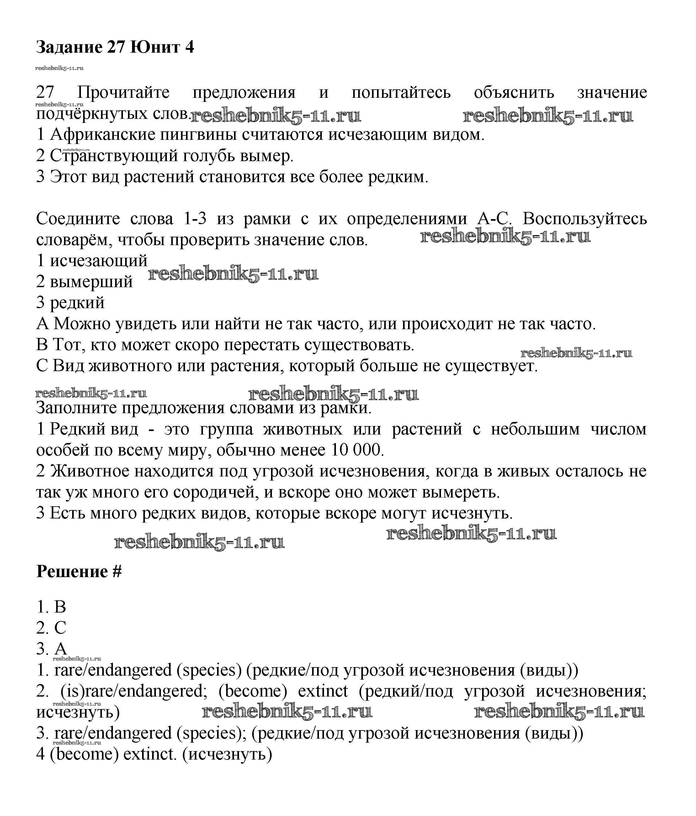 Готовая домашняя работа с ответами по Английскому языку за 7 класс Вербицкая, Гаярделли, Редли, Миндрул, Савчук Учебник Forward Часть 1, 2 Вентана-граф 2017 ФГОС - Unit 4. Animal quiz 27