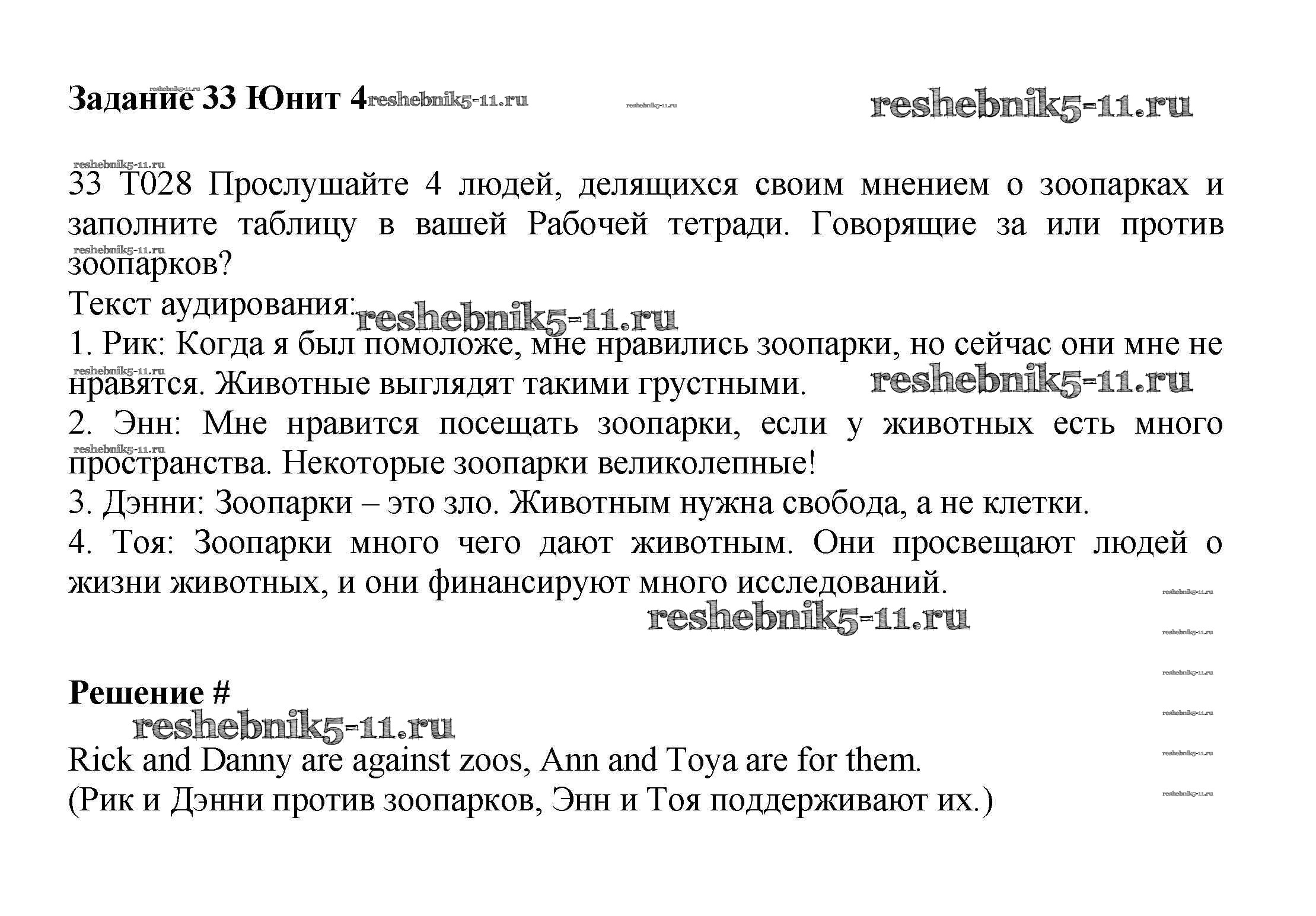 Готовая домашняя работа с ответами по Английскому языку за 7 класс Вербицкая, Гаярделли, Редли, Миндрул, Савчук Учебник Forward Часть 1, 2 Вентана-граф 2017 ФГОС - Unit 4. Animal quiz 33