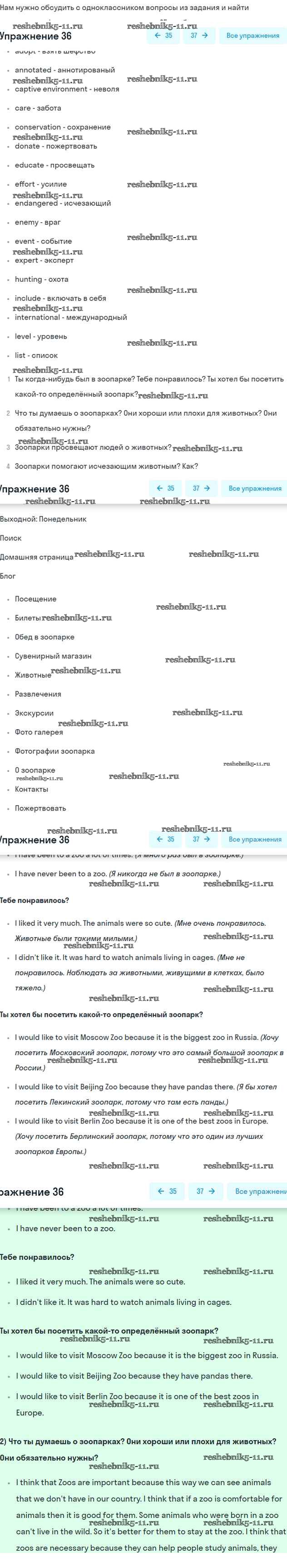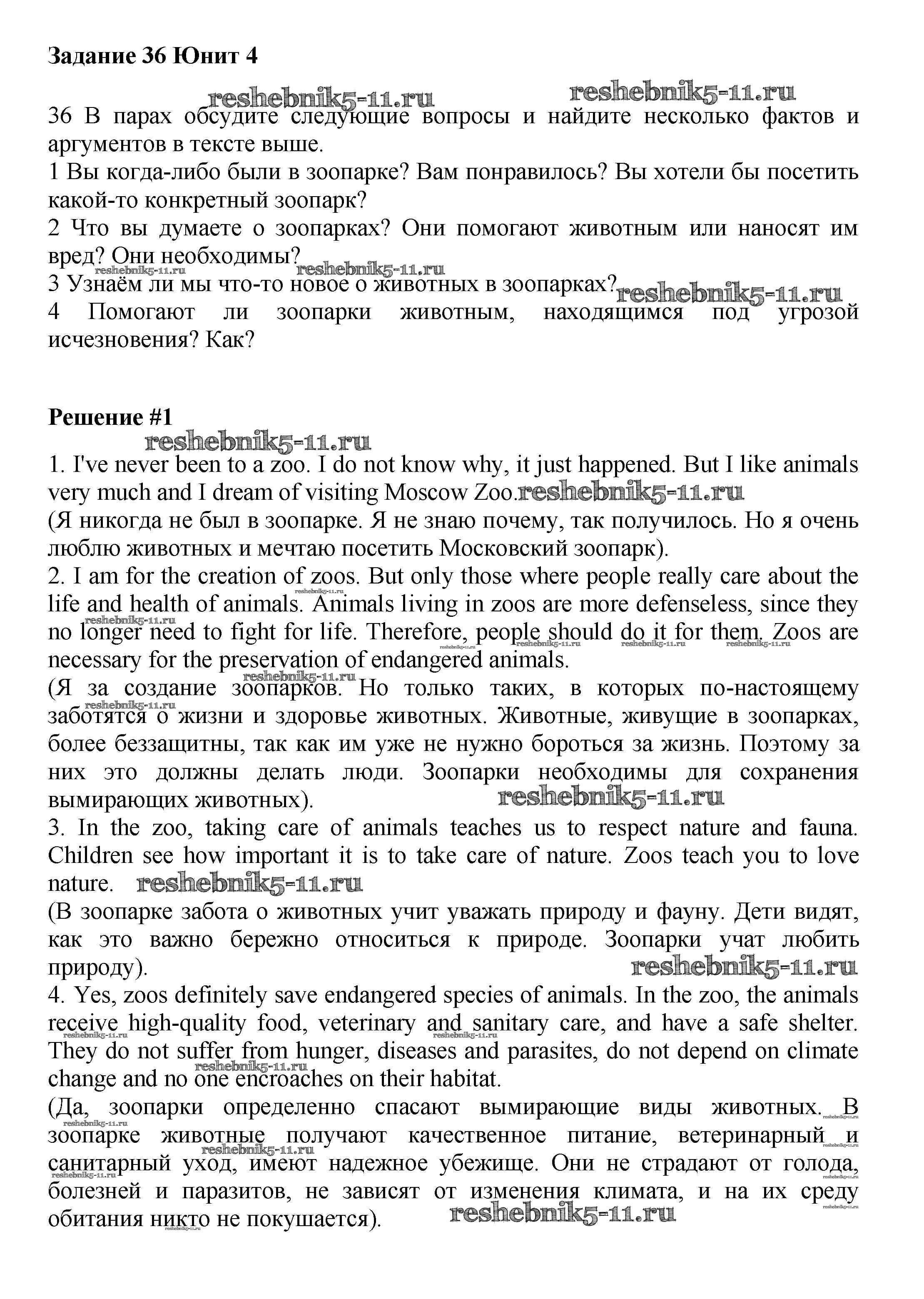 Готовая домашняя работа с ответами по Английскому языку за 7 класс Вербицкая, Гаярделли, Редли, Миндрул, Савчук Учебник Forward Часть 1, 2 Вентана-граф 2017 ФГОС - Unit 4. Animal quiz 36