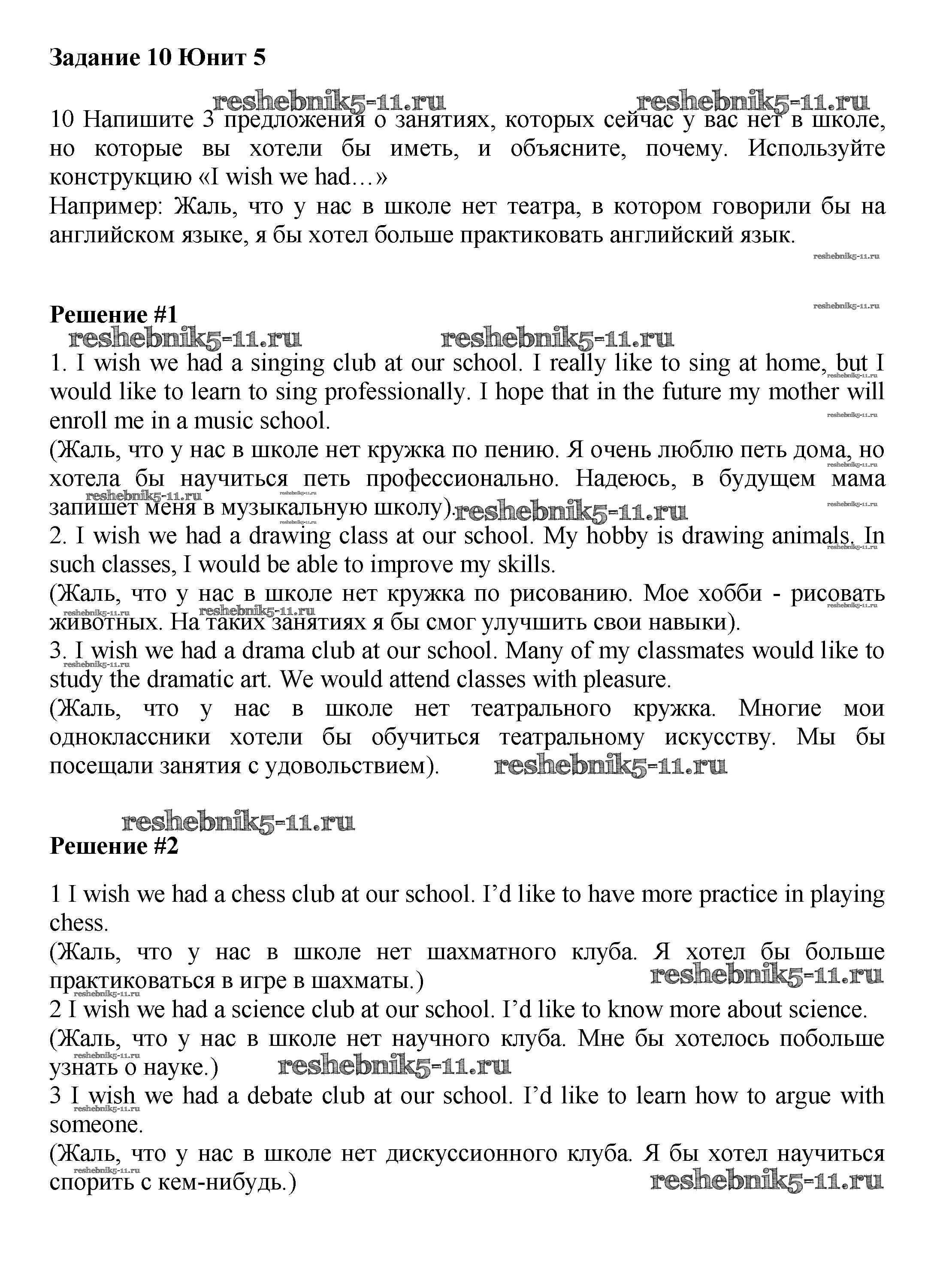 Готовая домашняя работа с ответами по Английскому языку за 7 класс Вербицкая, Гаярделли, Редли, Миндрул, Савчук Учебник Forward Часть 1, 2 Вентана-граф 2017 ФГОС - Unit 5. School activities 10