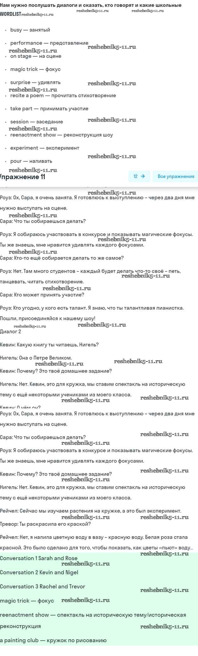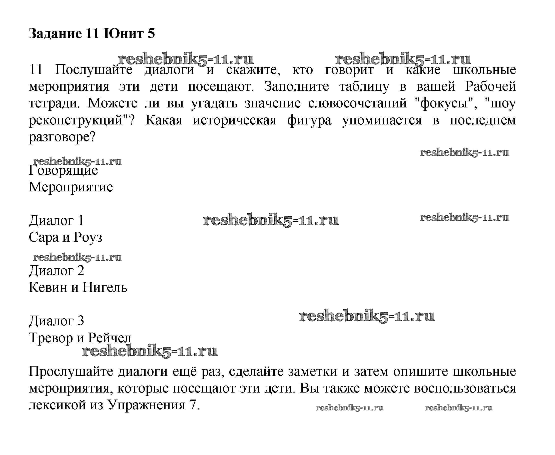 Готовая домашняя работа с ответами по Английскому языку за 7 класс Вербицкая, Гаярделли, Редли, Миндрул, Савчук Учебник Forward Часть 1, 2 Вентана-граф 2017 ФГОС - Unit 5. School activities 11