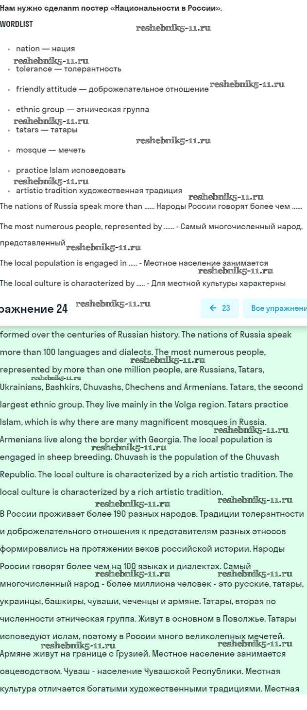 Готовая домашняя работа с ответами по Английскому языку за 7 класс Вербицкая, Гаярделли, Редли, Миндрул, Савчук Учебник Forward Часть 1, 2 Вентана-граф 2017 ФГОС - Unit 5. School activities 24